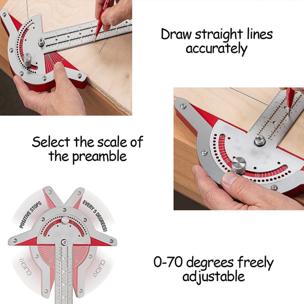 Woodworkers Edge Ruler, Adjustable Angle Protractor Two Arm Woodworking Measure Tool