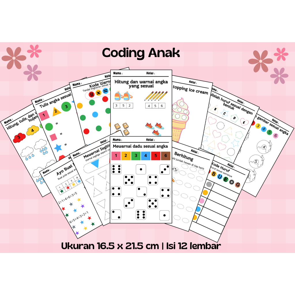 Work A6 - 12 Sheets/Learning Sheets for Preschool and Kindergarten Children / Children's coding / learning simple coding/Worksheet activity