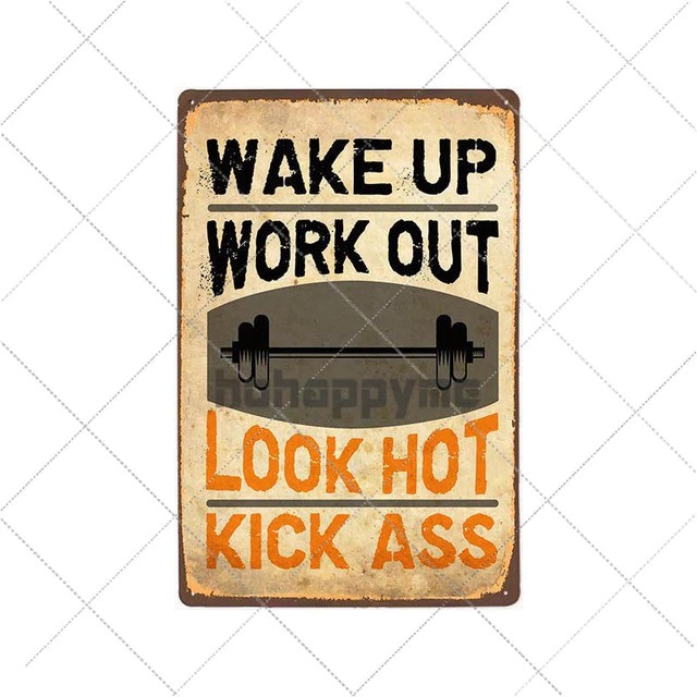 Work Out Slogan Poster Retro Gym Tin Sign Fitness Exercise Plate Vintage Sport Sign Pub Bar Gym Wall Decorative Plaque 20x30cm