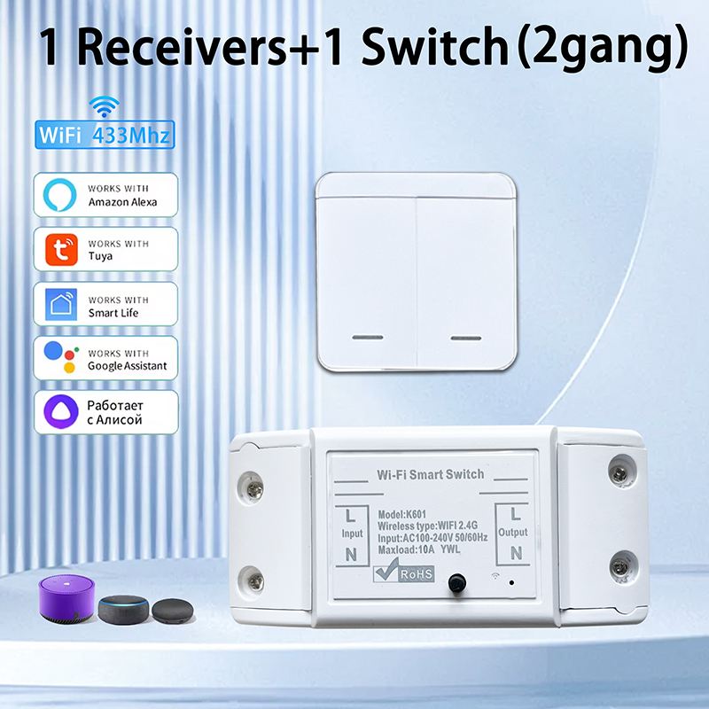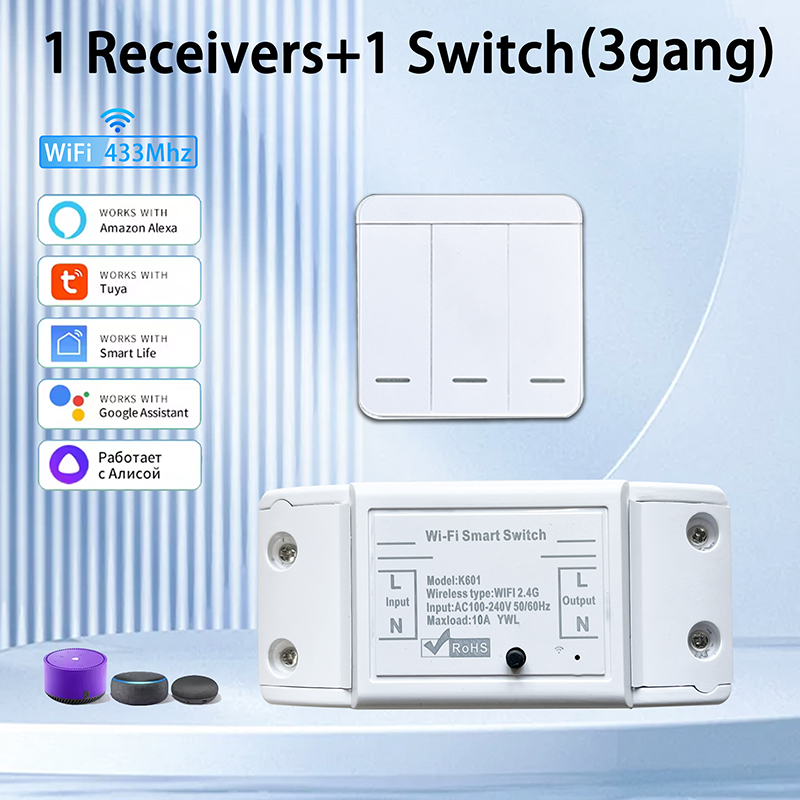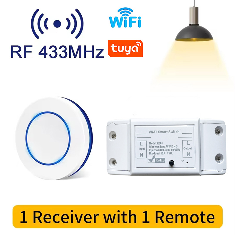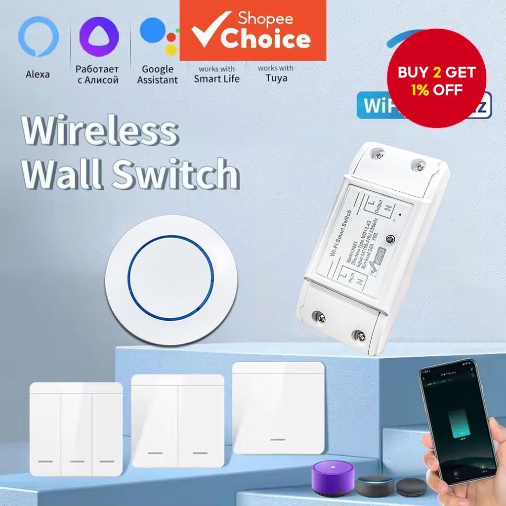 Works with Tuya WiFi Switch: Smart Home RF 433MHz 1/2/3 Gang Wall Switch, Mini Round Button Panel Switch, Voice Control, Supports Alexa and Google Assistant