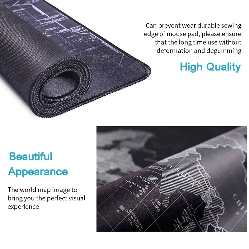 World Map Mouse Pad Mouse Mat Desk Pad Extended Large Gaming Mousepad Waterproof Keyboard Pad