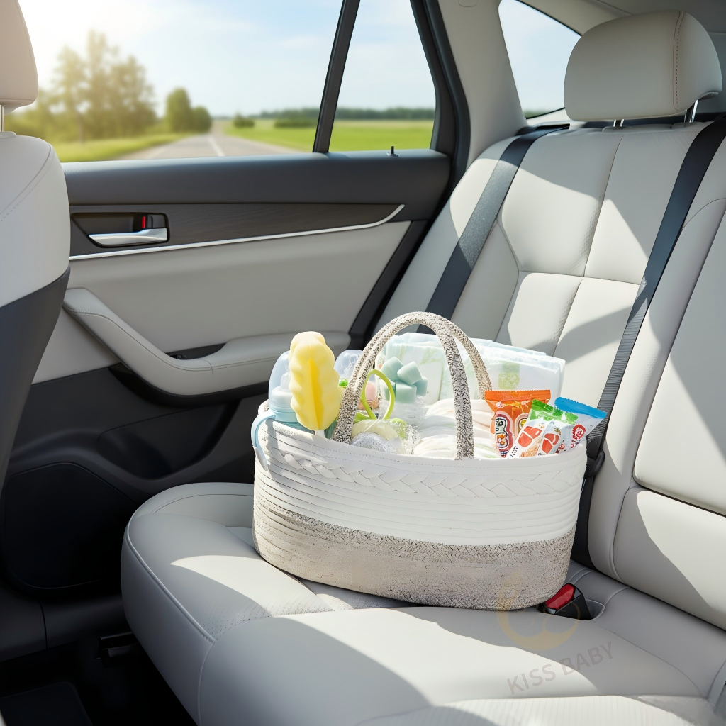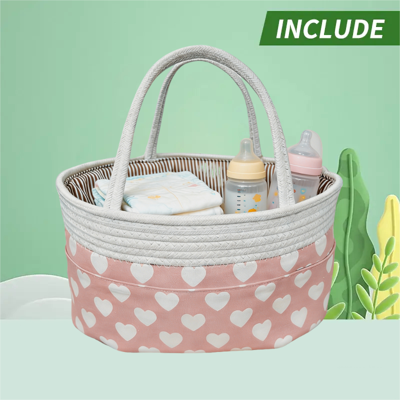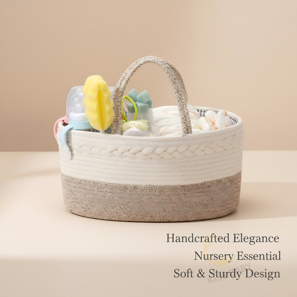 Woven Cotton Baby Diaper Caddy Organizer Bag Hand-hel Organizer -Caddy Bag-Diaper Organizer