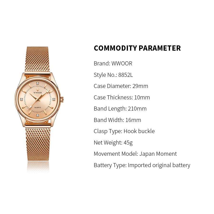 Wwoor Women Watches Waterproof Quartz Analog Clock Business Female Watch 8852