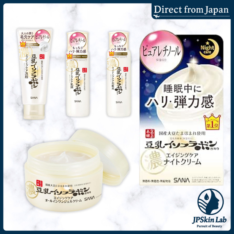 SANA Smooth Skin Wrinkle Care - Cleansing Foam, Gel Cream, Night Cream, Emulsion, and Moisturizing Lotion with Soy Isoflavones and Pure Retinol ❘ Direct from & Made in Japan