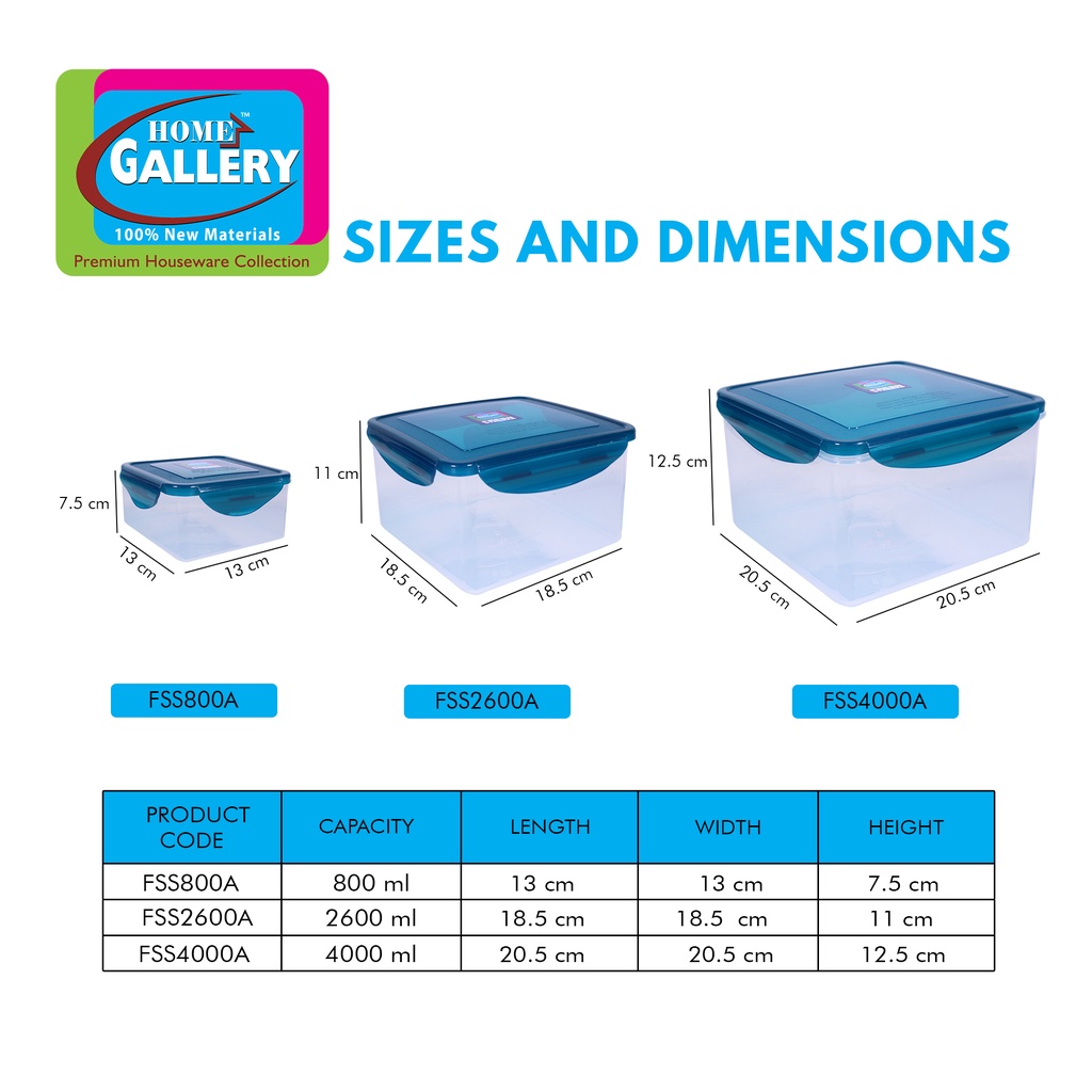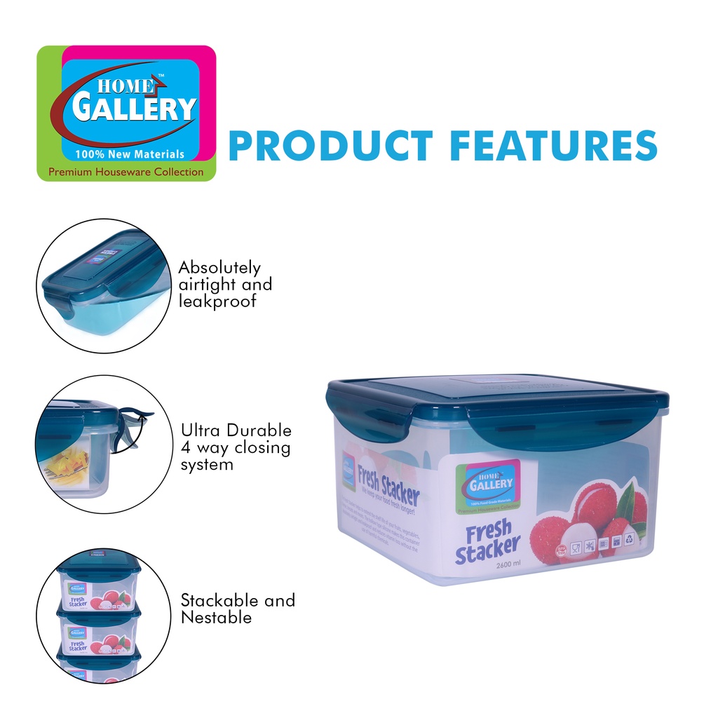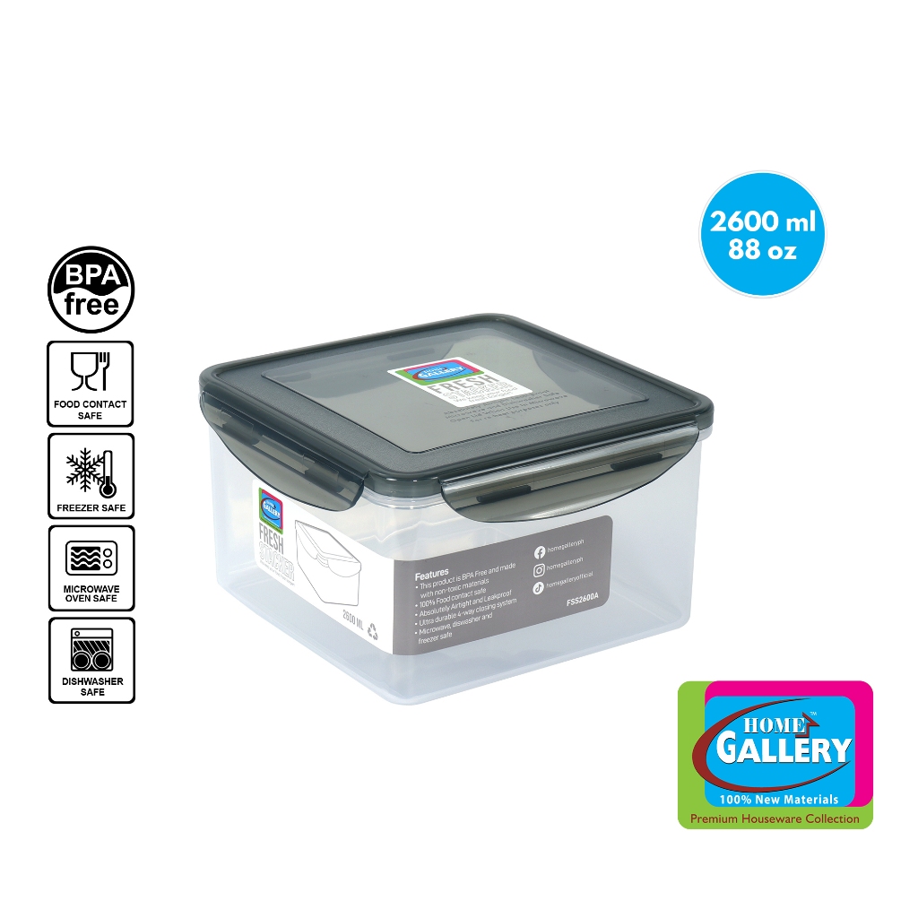 Home Gallery Fresh Stacker Square Food Keeper 2600ml/88oz | BPA Free Food Storage FSS2600A