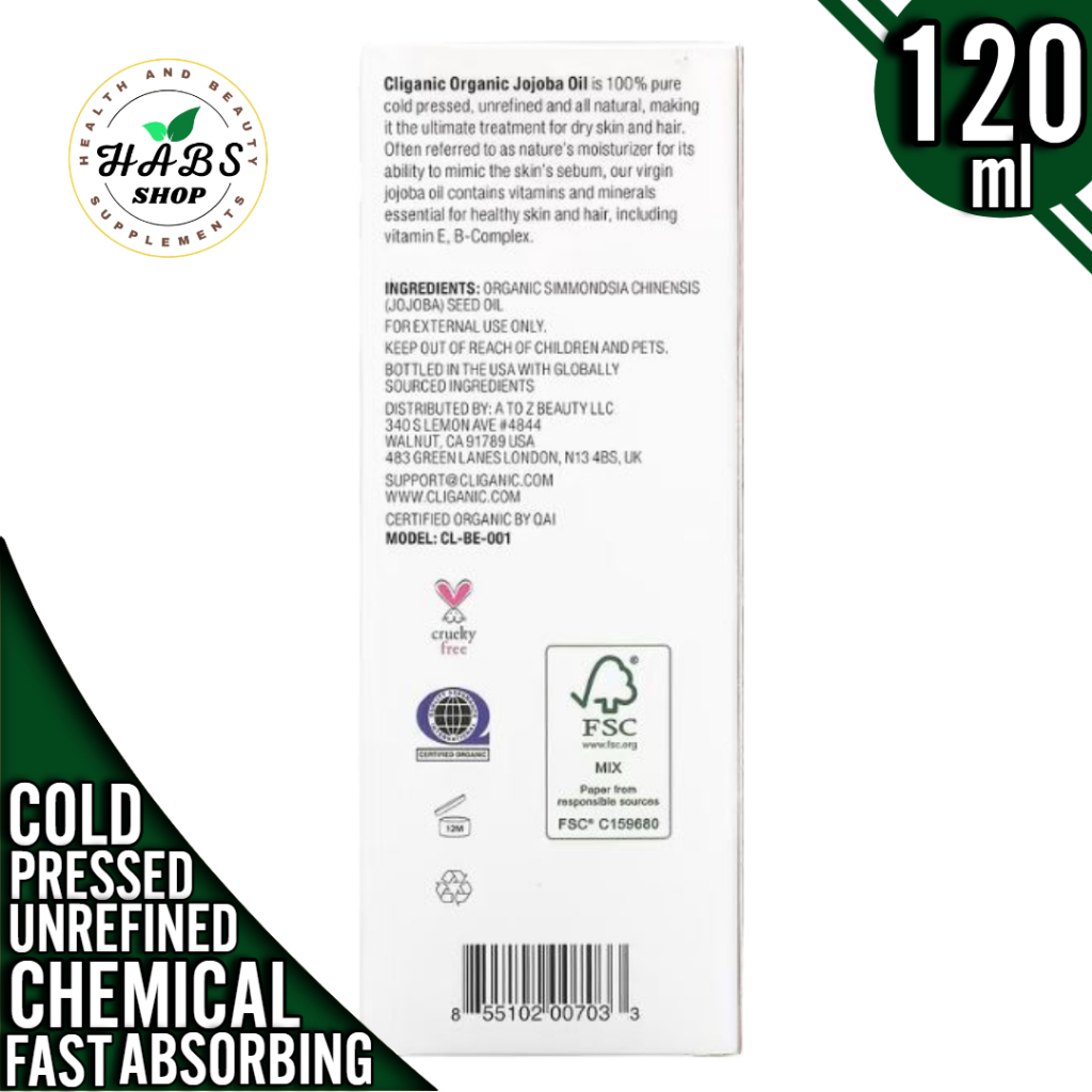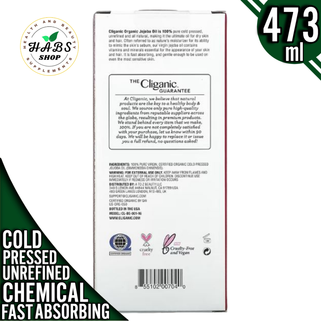 Cliganic, 100% Pure & Natural, Jojoba Oil, 4 fl oz (120 ml) or 16 fl oz (473 ml