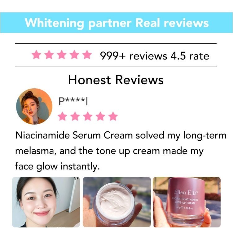 Ellen Ella Glow 3IN1 Boosting Brightening Tone Up Cream Niacinamide Brightening Moisturizer Combo
