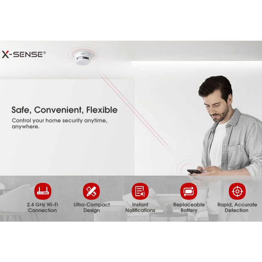 X-SENSE XS01-WX Smart Wi-Fi Connected Mini Photoelectric Fire Smoke Alarm with Replaceable Battery
