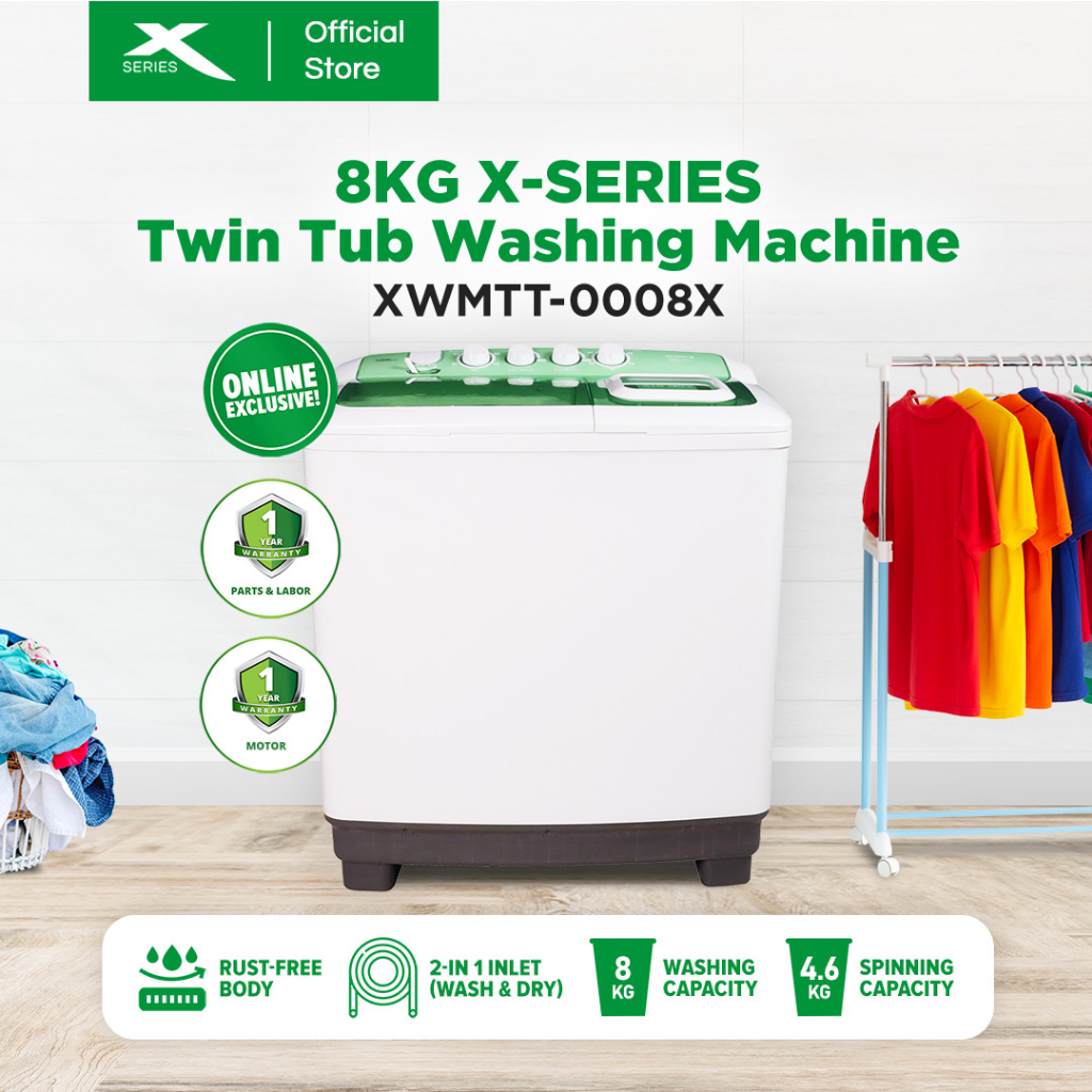 X-SERIES 8KG Twin Tub Wash and 4.6KG Spin Dry Washing Machine (Green Cover) (XWMTT-0008X)