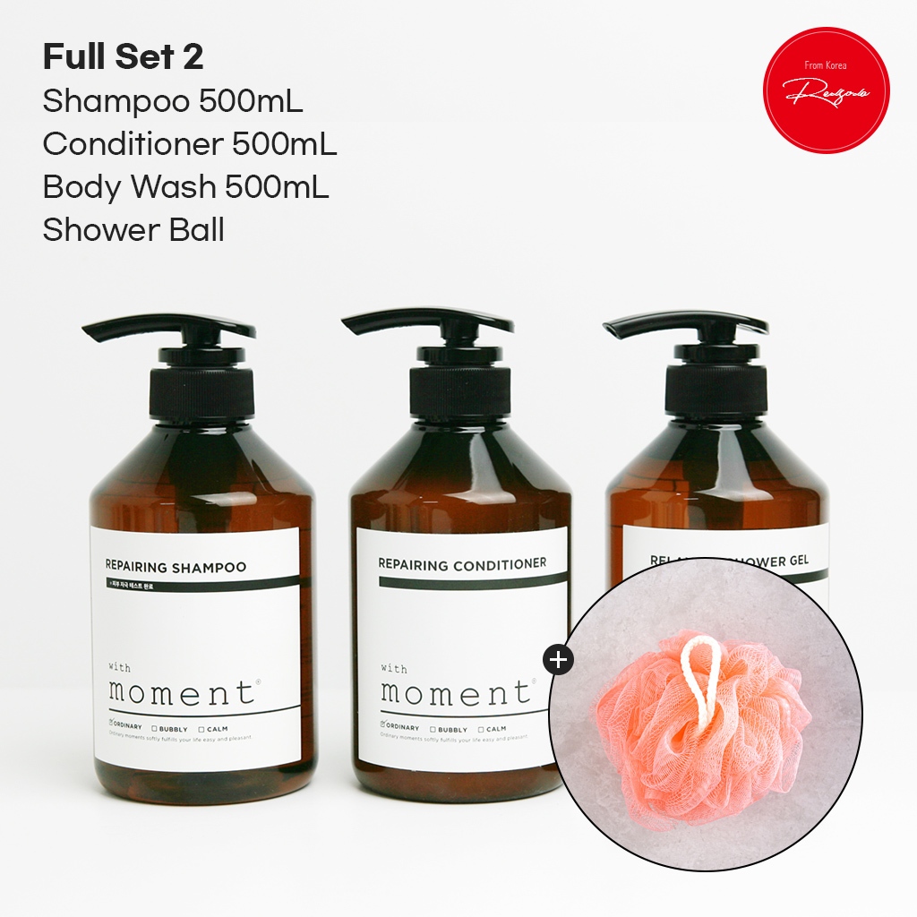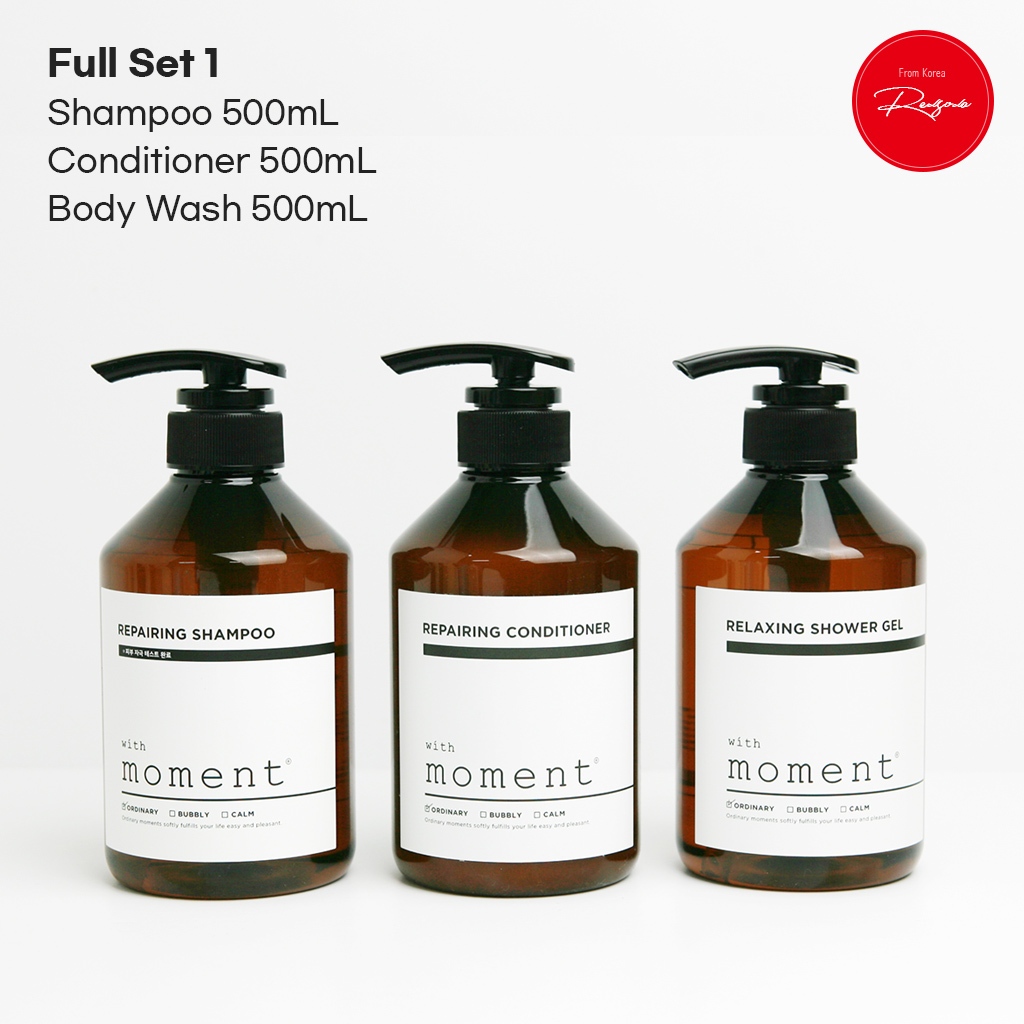 [With Moment] Shampoo, Conditioner, Body Wash 500mL Set / K-Beauty Hair Care, Body Wash for Sensitive Skin, Smooth & Nourishing Hair Treatment
