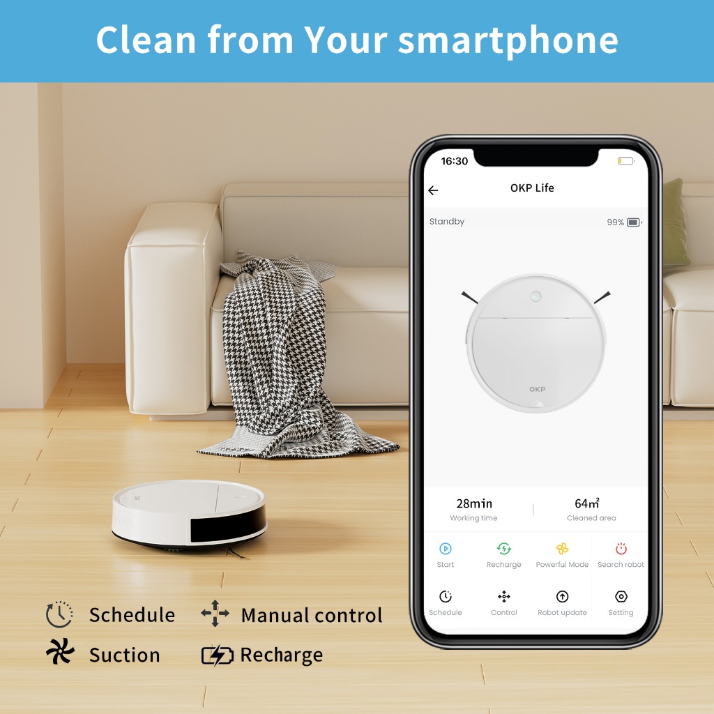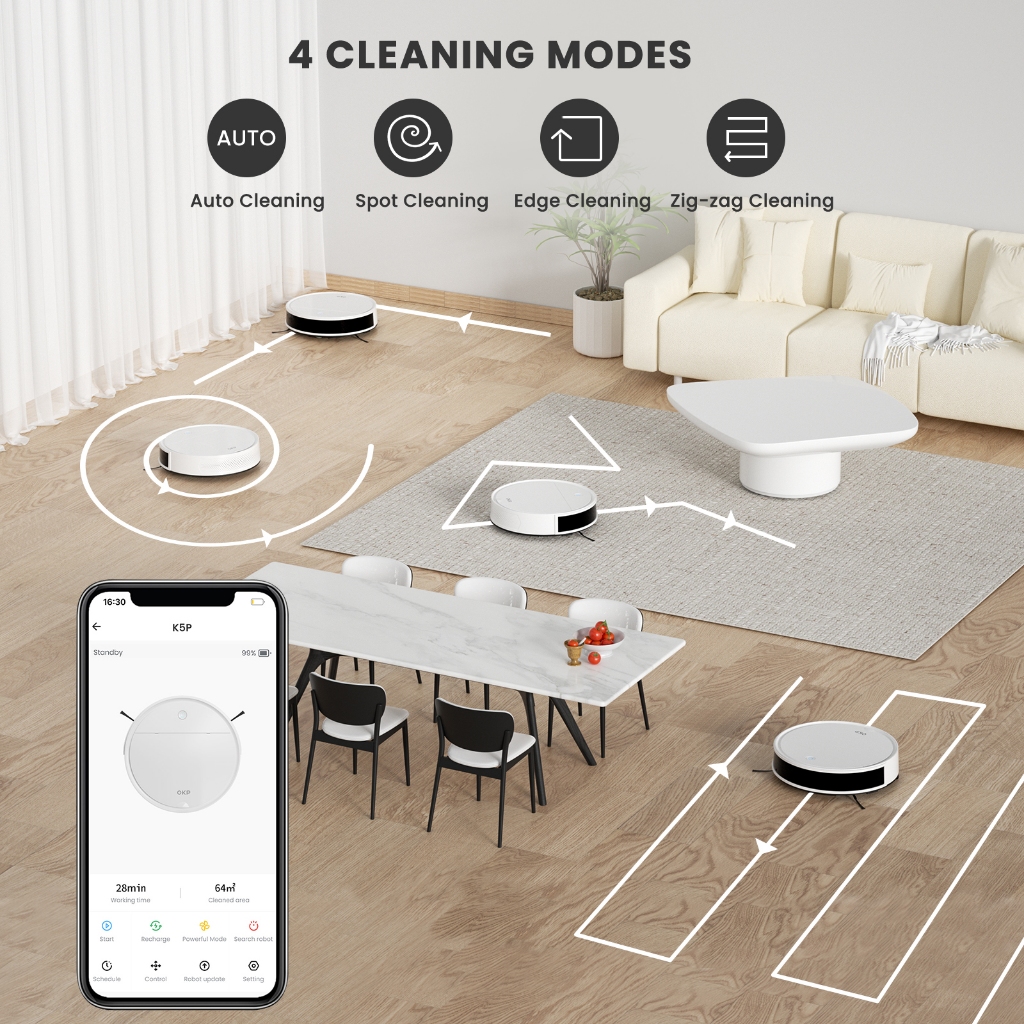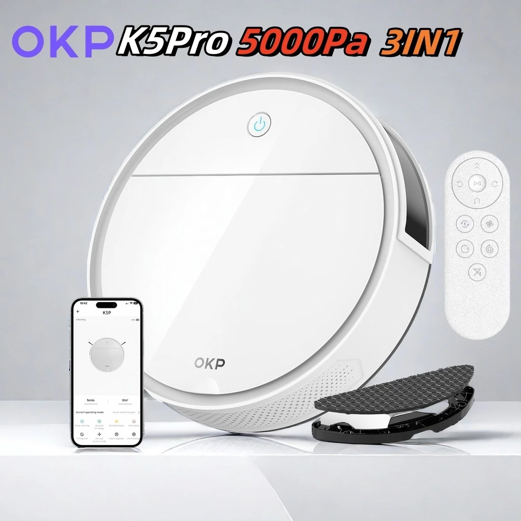 OKP K5 Pro 3-in-1 Robot Vacuum Cleaner 5000Pa Suction Self-ChargingPerfect for Hard Floors Pet Hair
