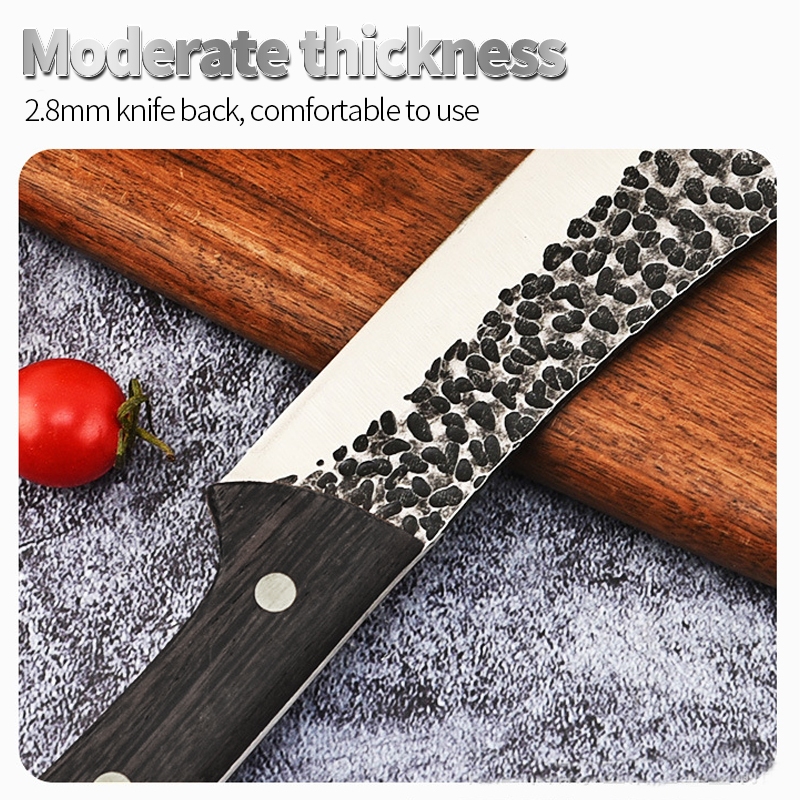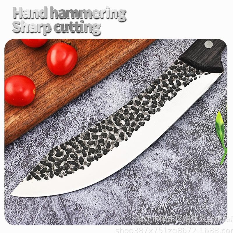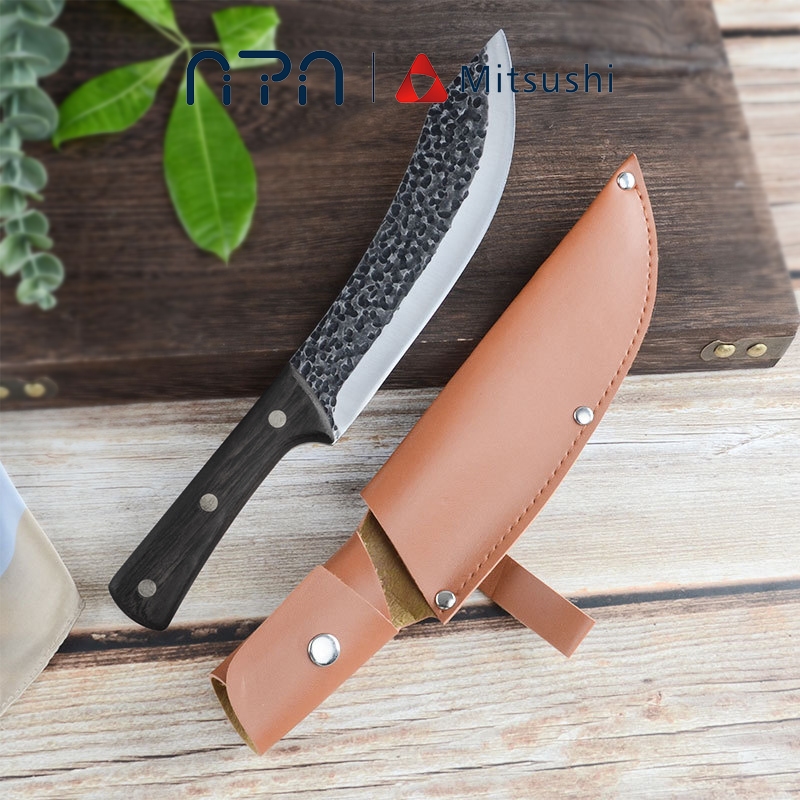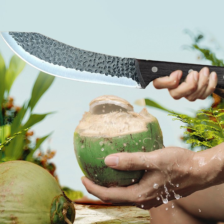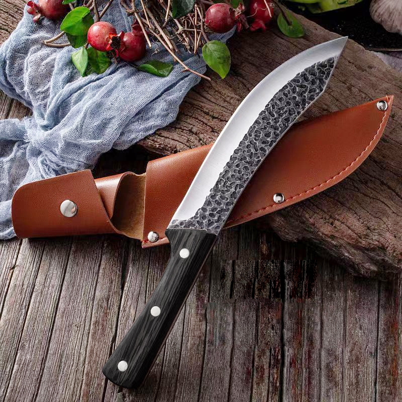 Nipiin Stainless Steel Kitchen Knife Handmade Bent Blade Machete With Leather Cover For Coconut