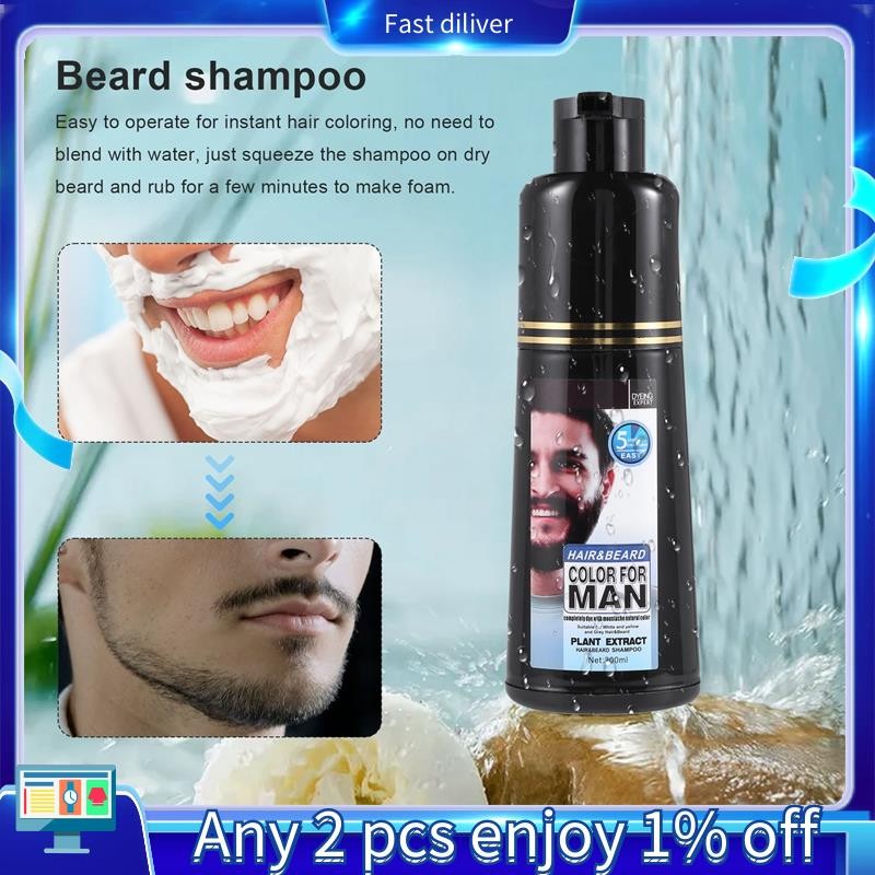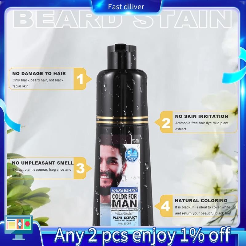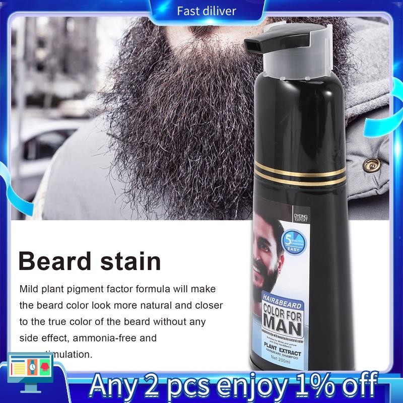 Permanent Beard Dye Shampoo for Men Beard Dying Removal White Grey Beard Hair Men Beard Shampoo 200ML
