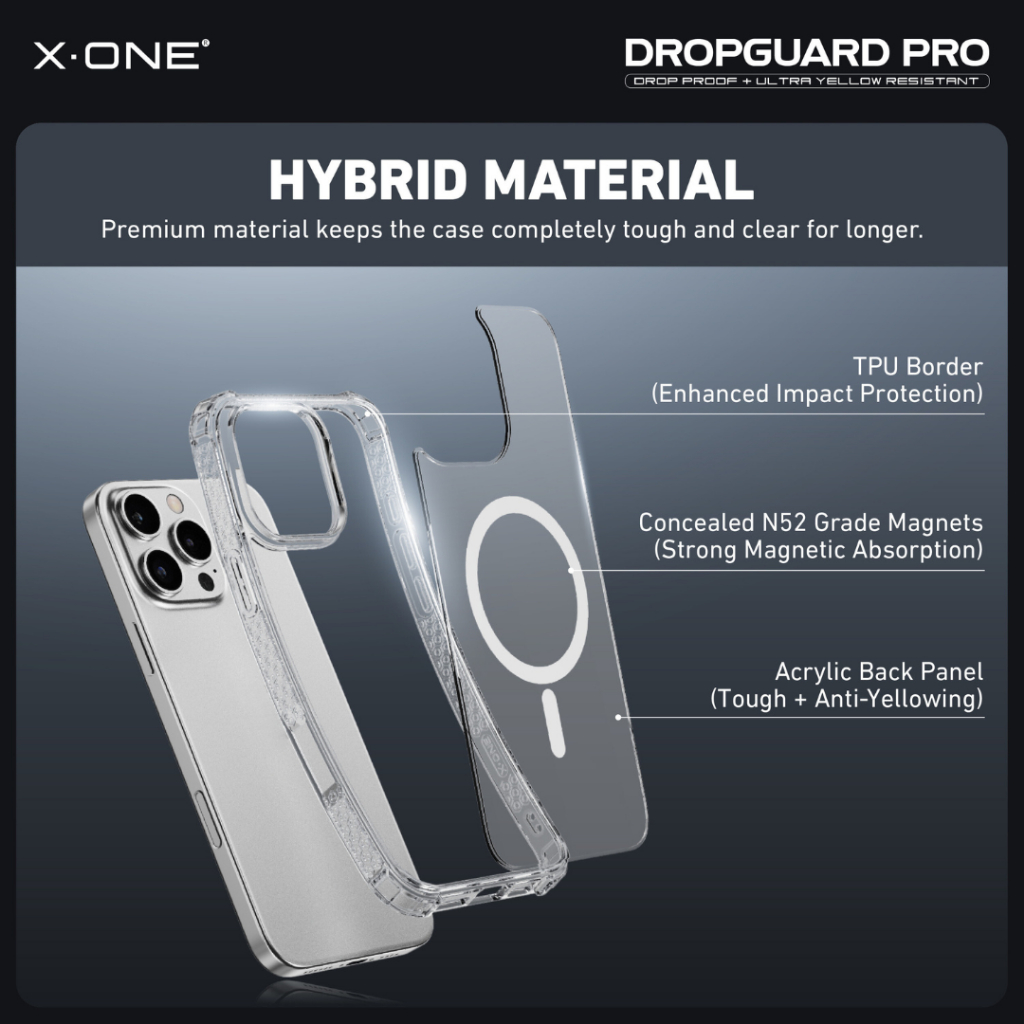 X.One Dropguard Pro Magnetic Case for i Phone 16 Pro Max/16 Pro/16 Plus/16/15 Ultra Yellowing-Resistant