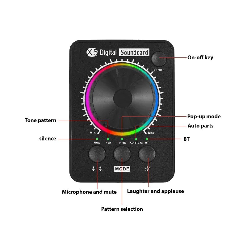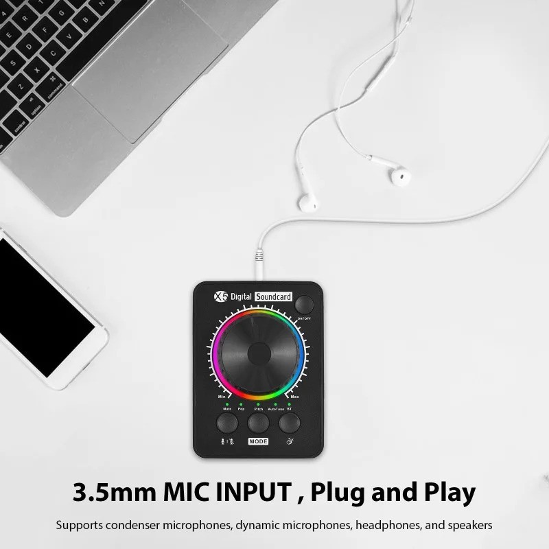 X5 Mini External Live Streaming Sound Card Bluetooth Music Input Portable USB/Type-C Audio Interface for Content Creators