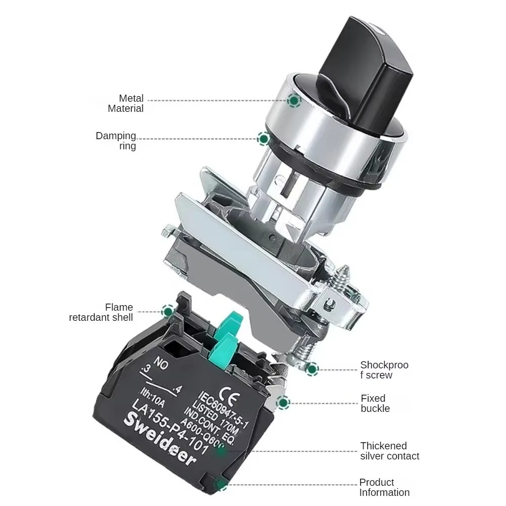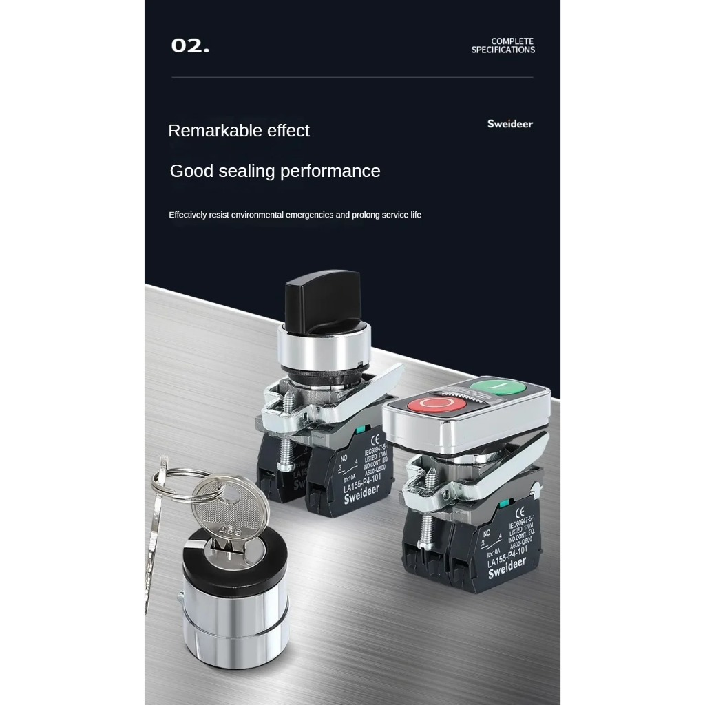 XB4 22mm push button panel switch with key 2-way 3-way rotary switch latching