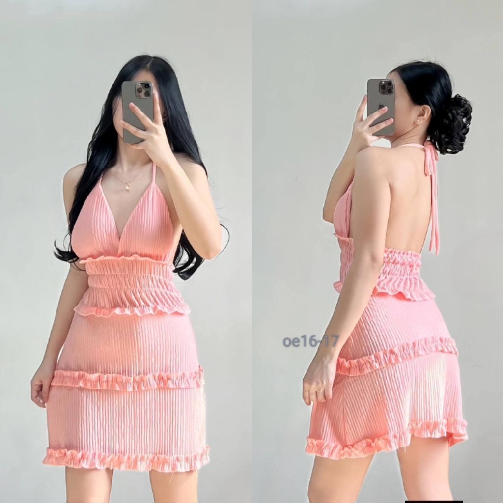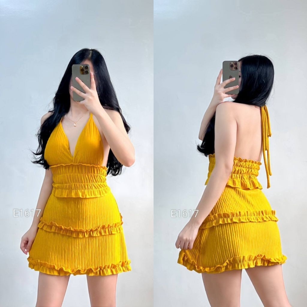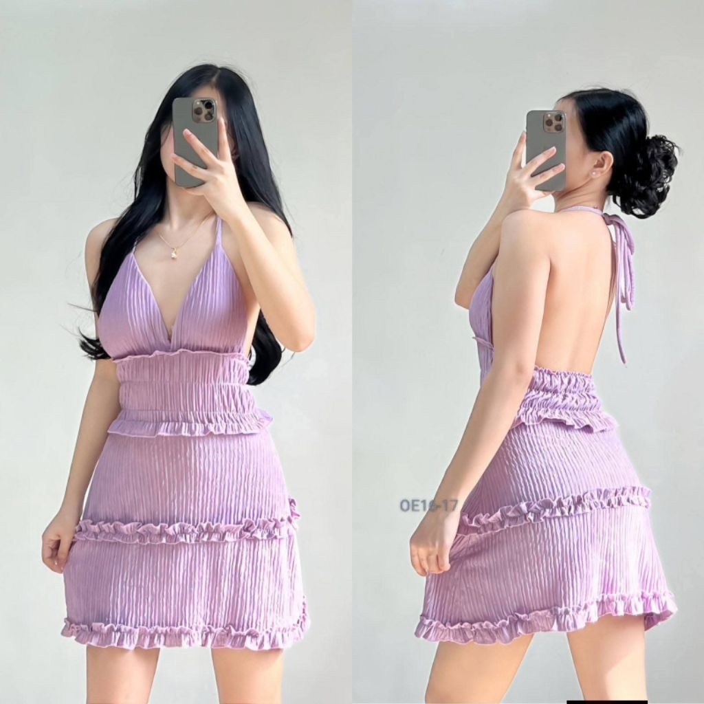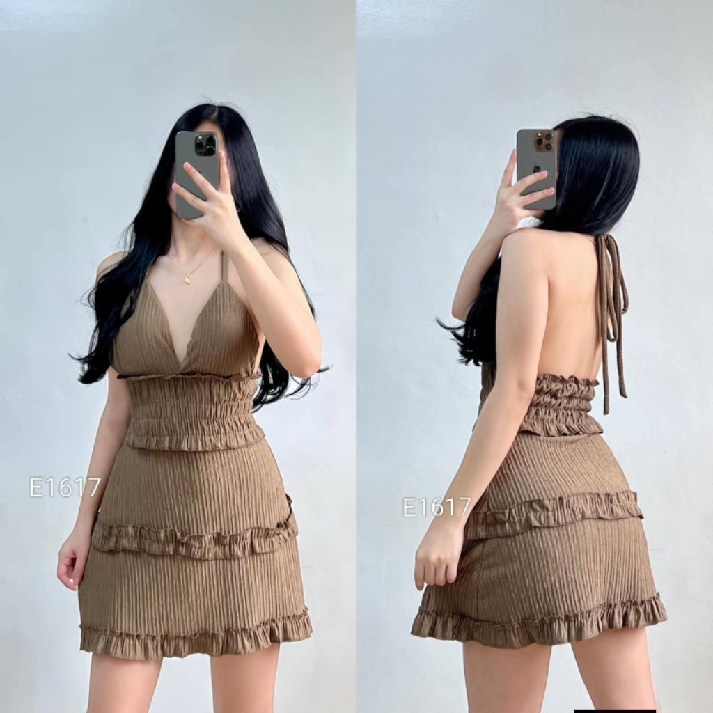 XC Shakira Women's Ruffled Mini Dress, Padded, Bark Crepe Fabric, Chic Casual Womenswear Elegant