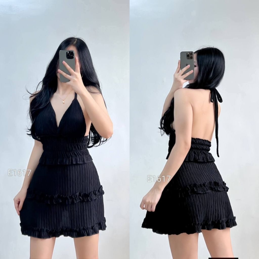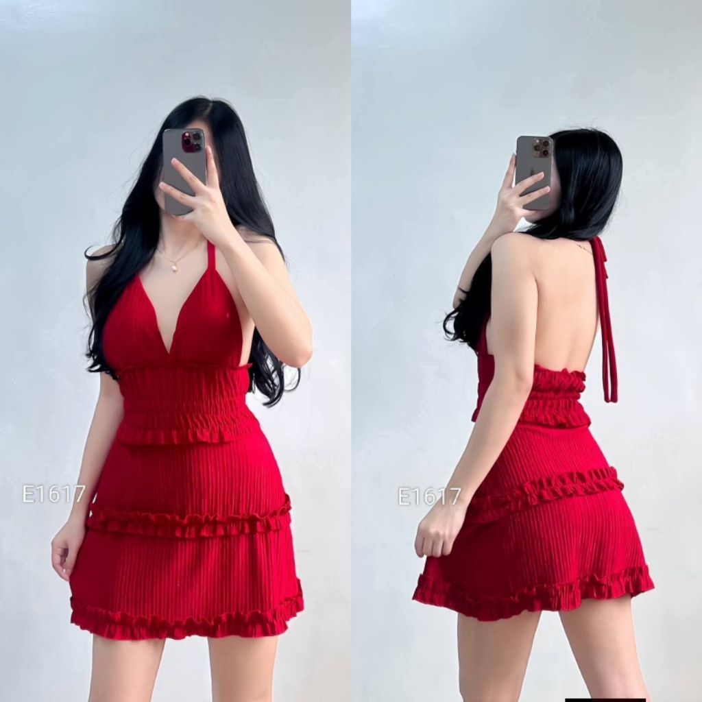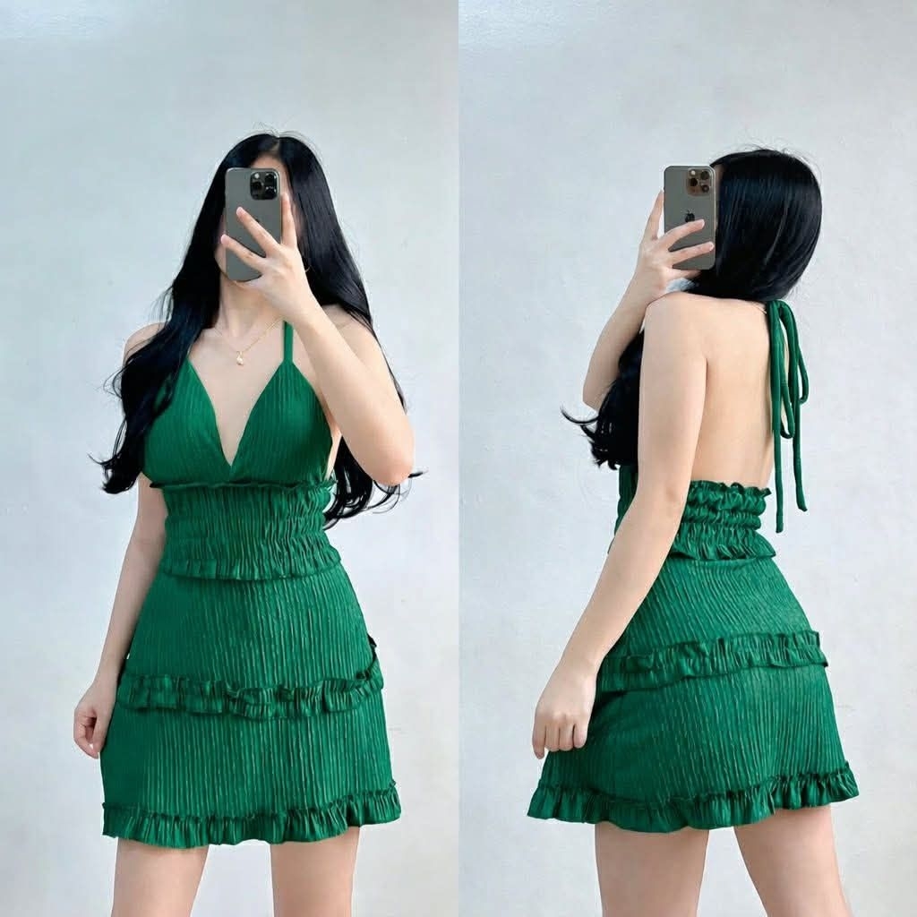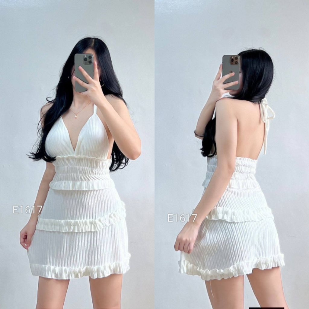 XC Shakira Women's Ruffled Mini Dress, Padded, Bark Crepe Fabric, Chic Casual Womenswear Elegant