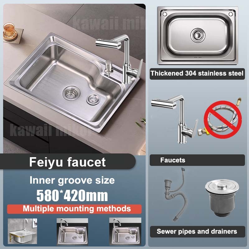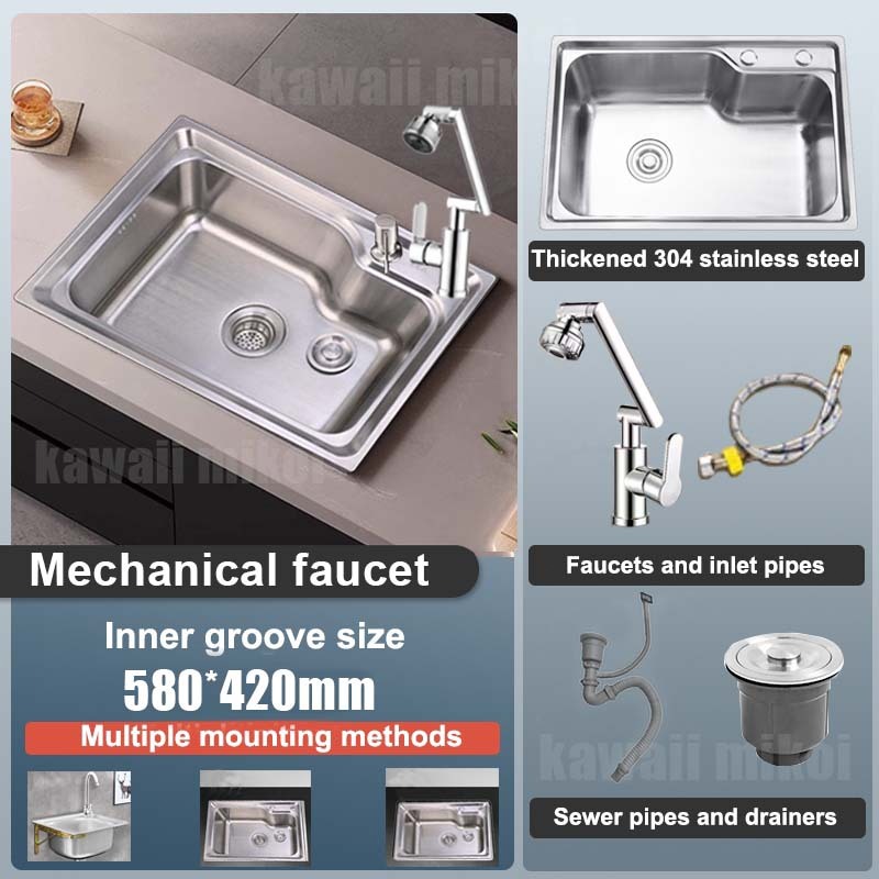 XCHENG 58*42CM 304 stainless steel Kitchen sink Lababo Vertical sink with faucet