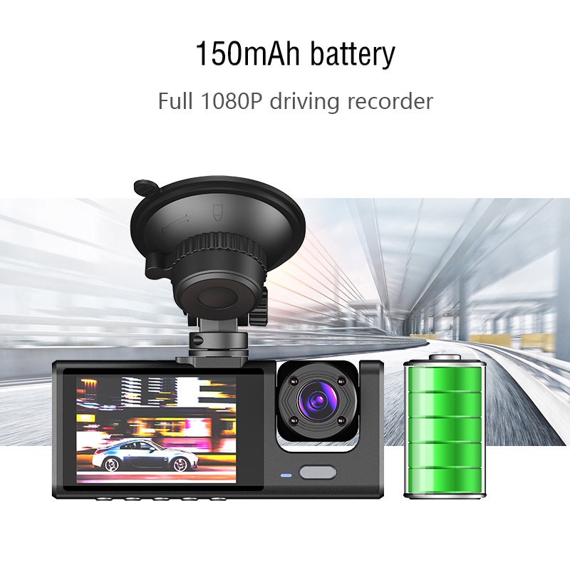 XGODY Dashcam 1080P Triple Lens Car Camera Vehicle Video Dash Cam Full HD Front Dashboard Camera 480P Rear View Camera