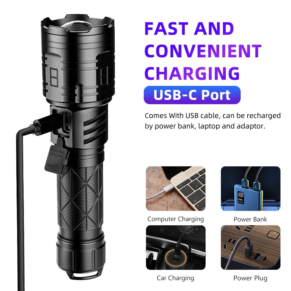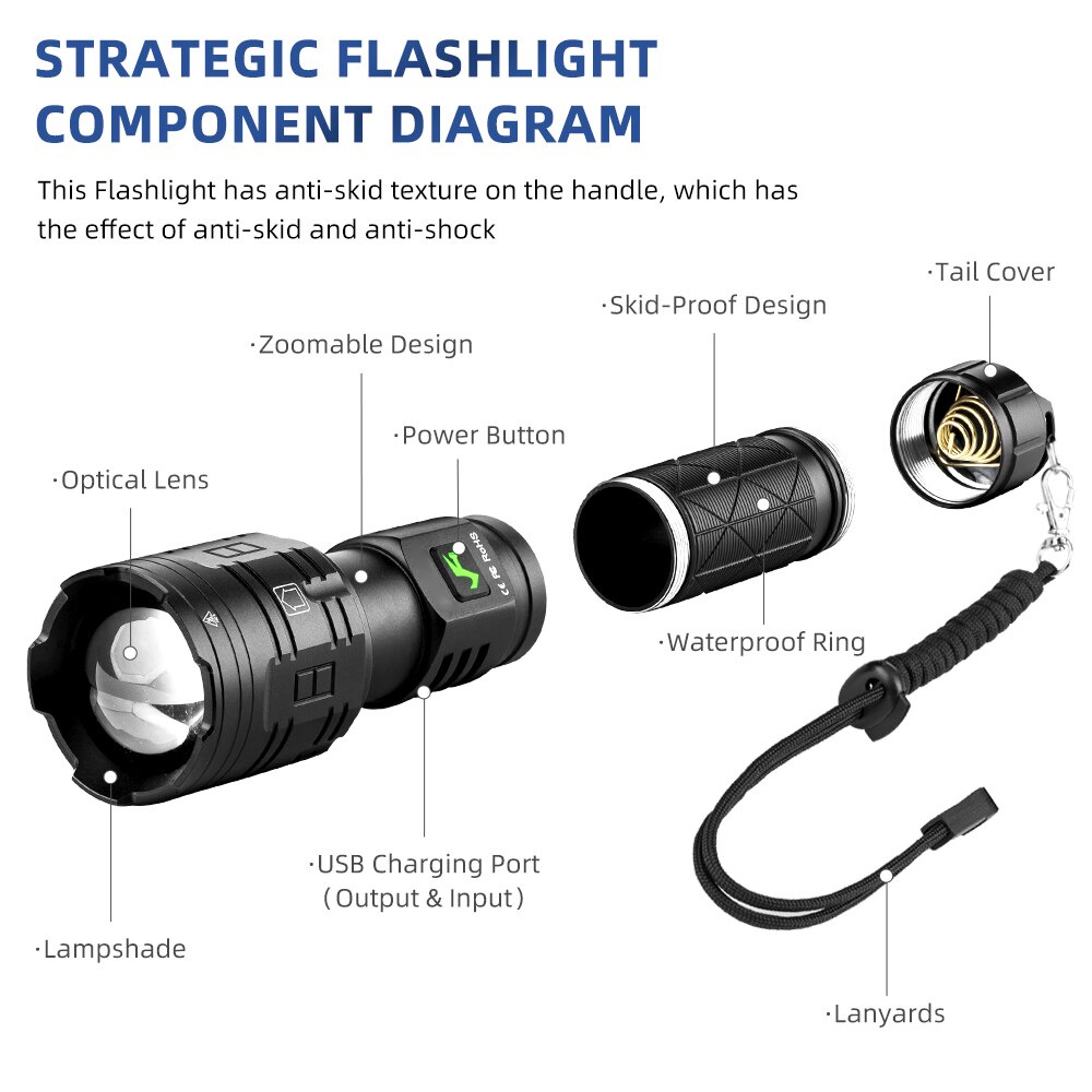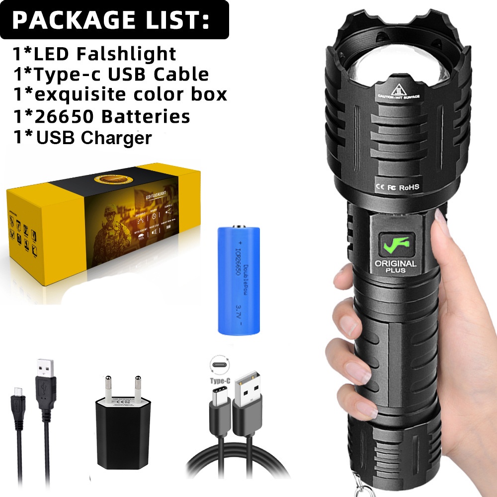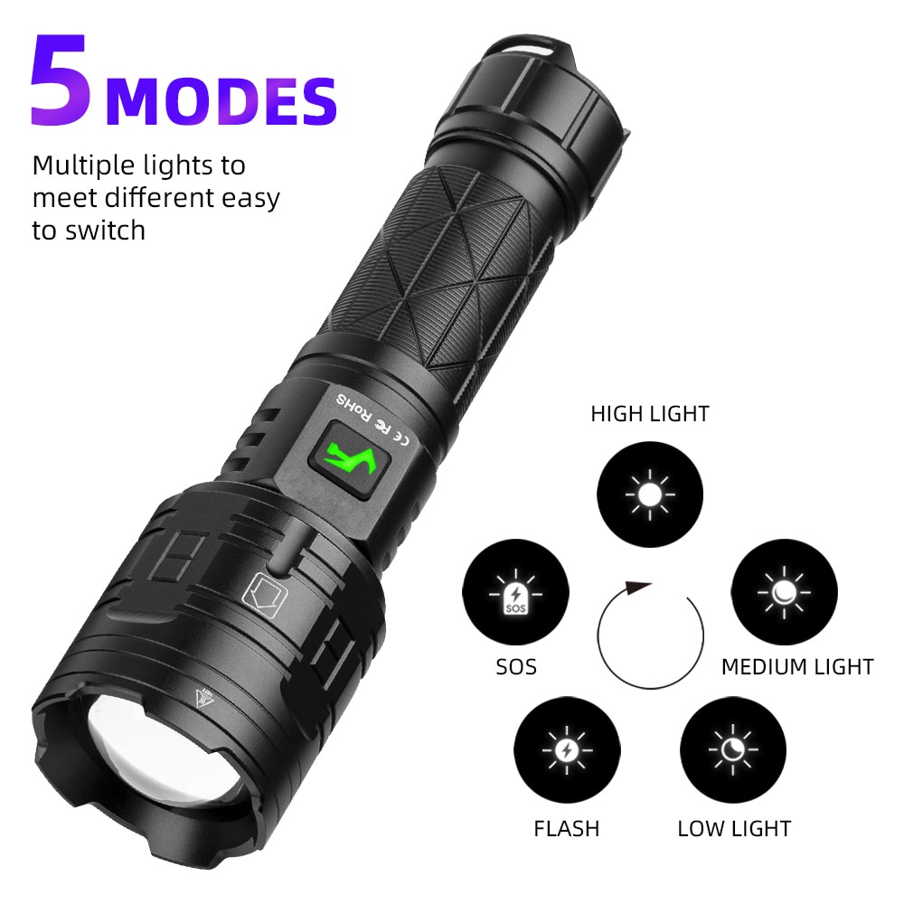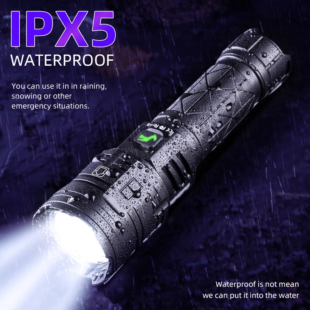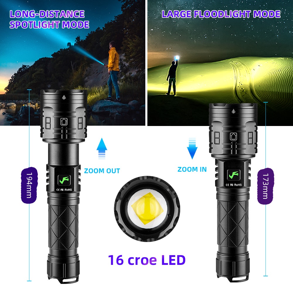 XHP160 LED Powerful Flashlight 16 CORE USB Rechargeable 5Modes Flashlight XHP100 XHP90 Zoom IPX5 Waterproof Lamp Outdoor Lighting