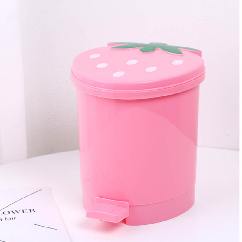 XI Mini Strawberry Trash Can with Lid School Classroom Desk Garbage Bucket for Indoor Outdoor Small Garbage Storage Bin