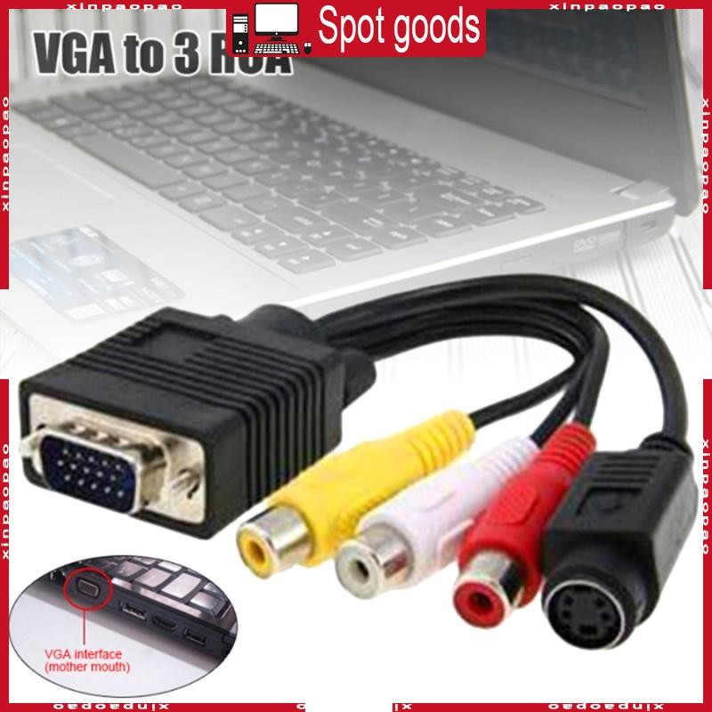 XI VGA to 3 RCA + S Cable VGA Tv-Out to AV Cable VGA Component for Computer TV