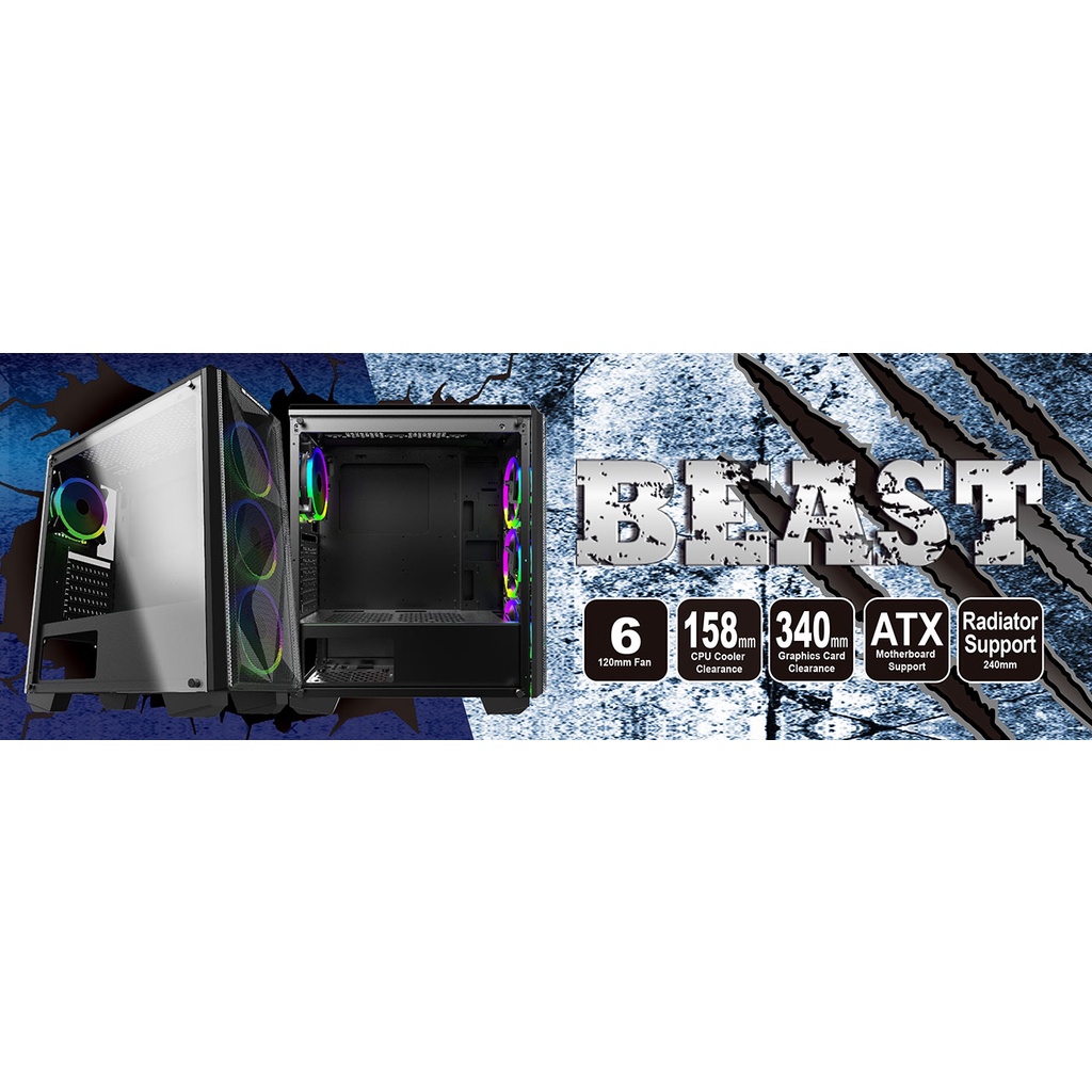 XIGMATEK Beast Front Mesh and Side Tempered Design with 4 X RGB Fan