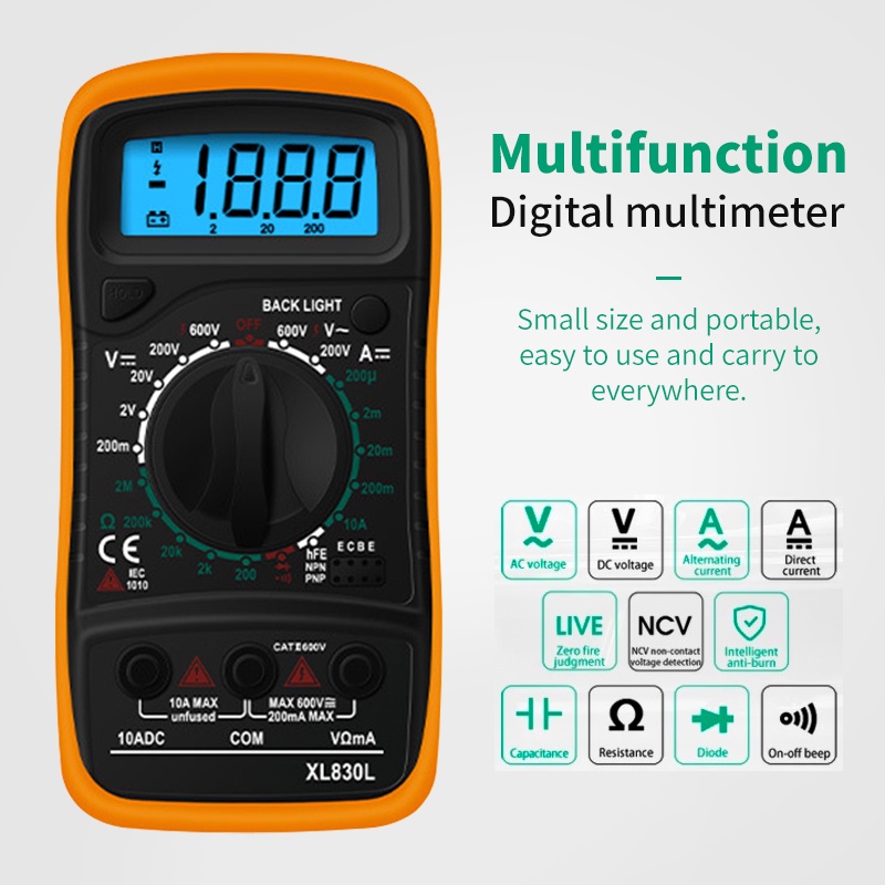 XL830L Digital Multimeter LCD Multi Tester Electrical Voltmeter Measuring Meter Included Battery