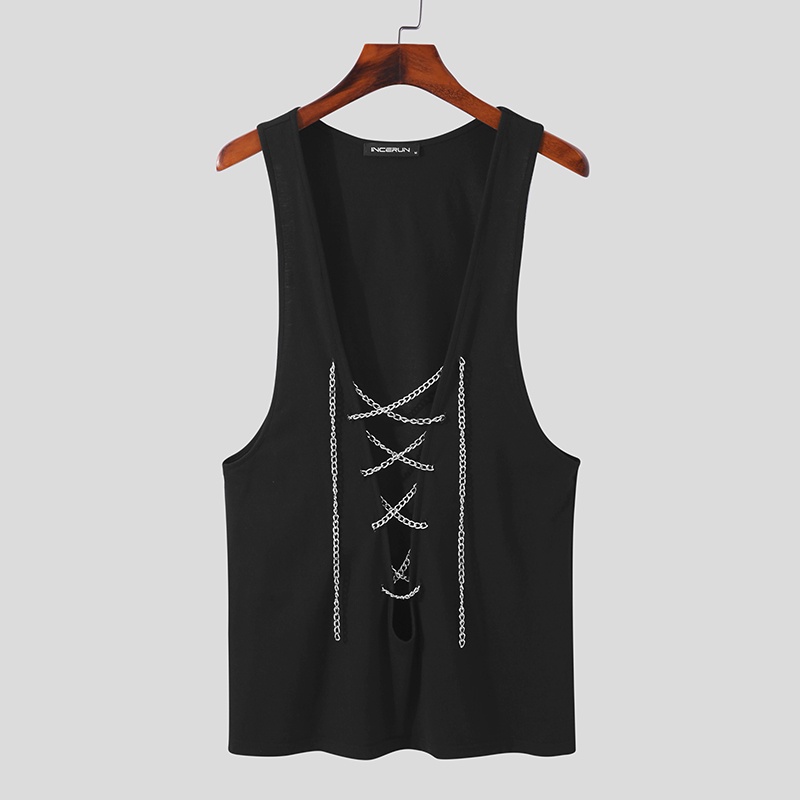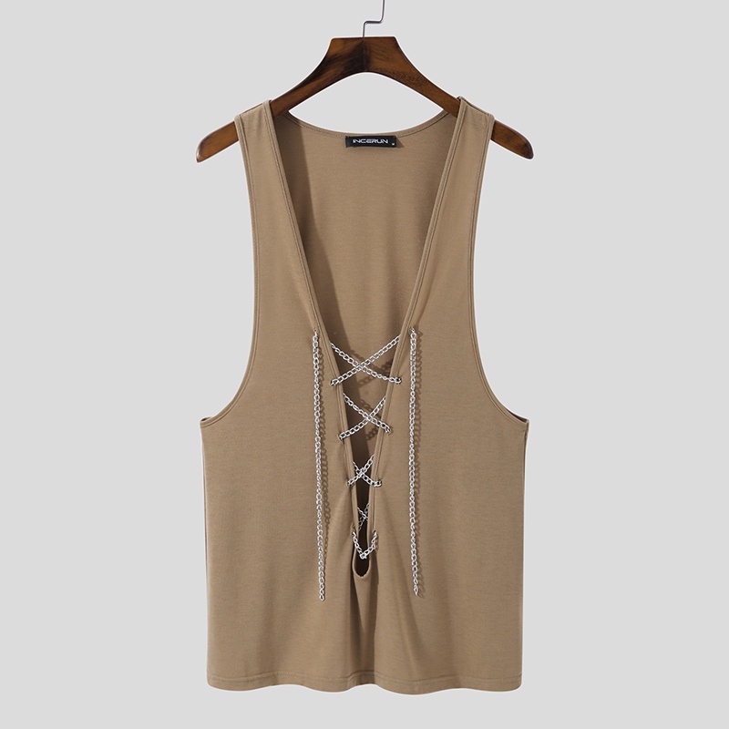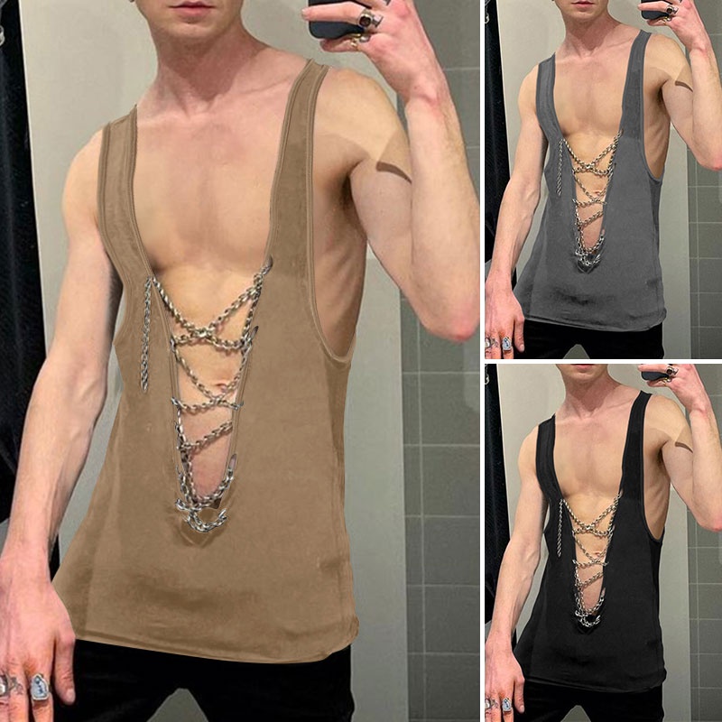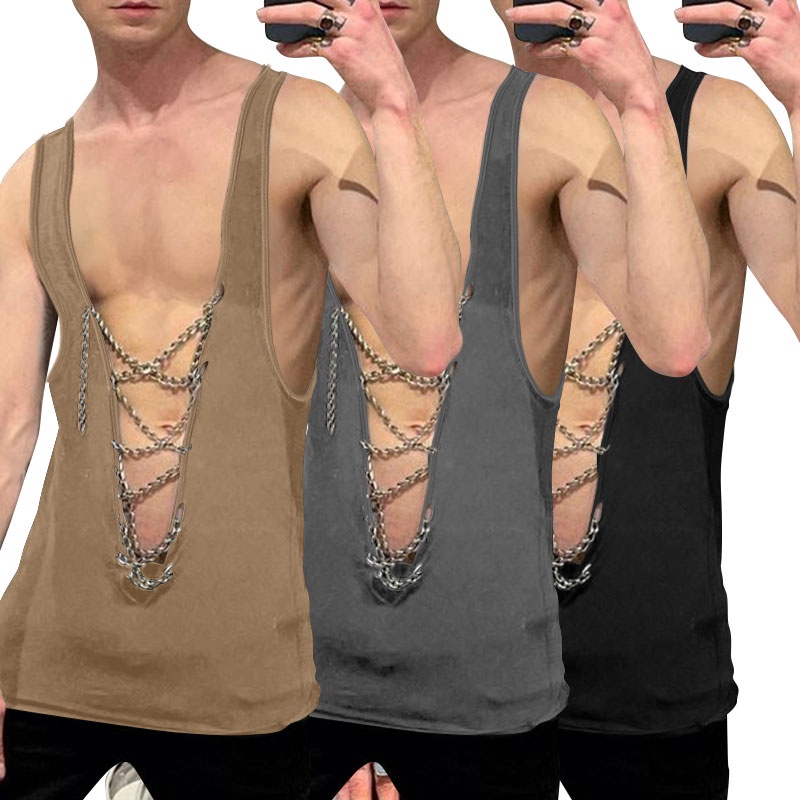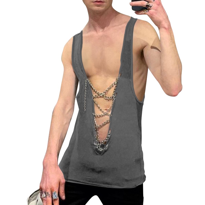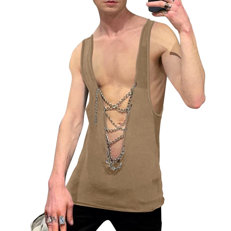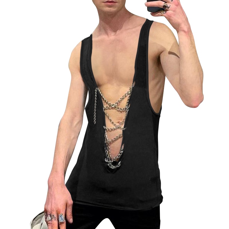 XMAN Men's Fashion Sleeveless Deep V-neck Club Wear Tank