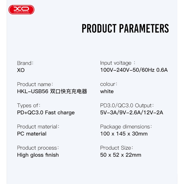 XO-USB56 Fast US Charger Dual Port Fast Charger Adapter 24 Watts TYPE-C AND USB
