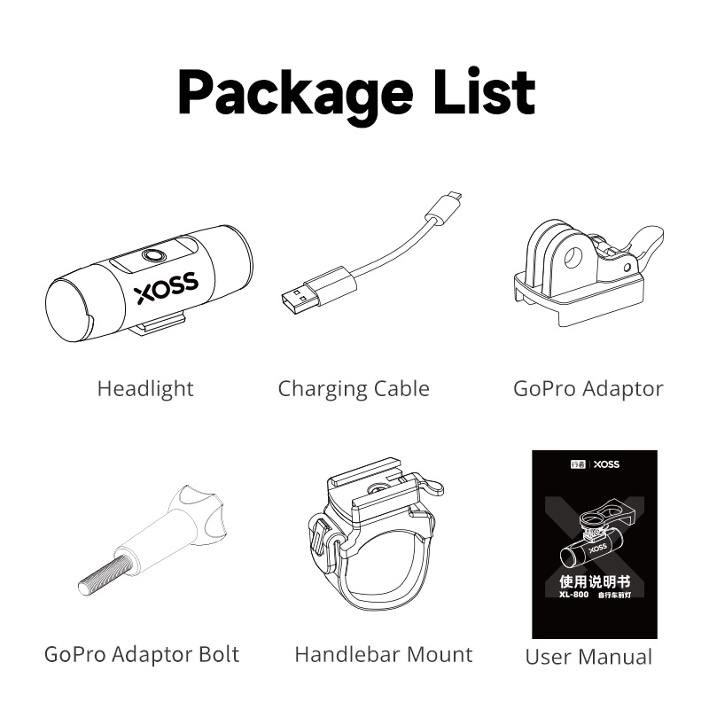 XOSS XL 800 Bike Headlight 800lm Torch Light Waterproof USB Rechargeable Bicycle Front Light 400 LM Cycling LED Headlight 2500 mAh Flashlight MTB Handle Lamp with Type-C