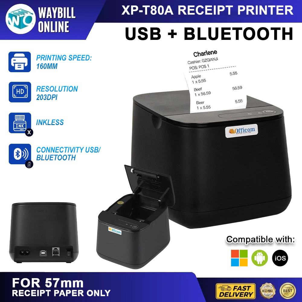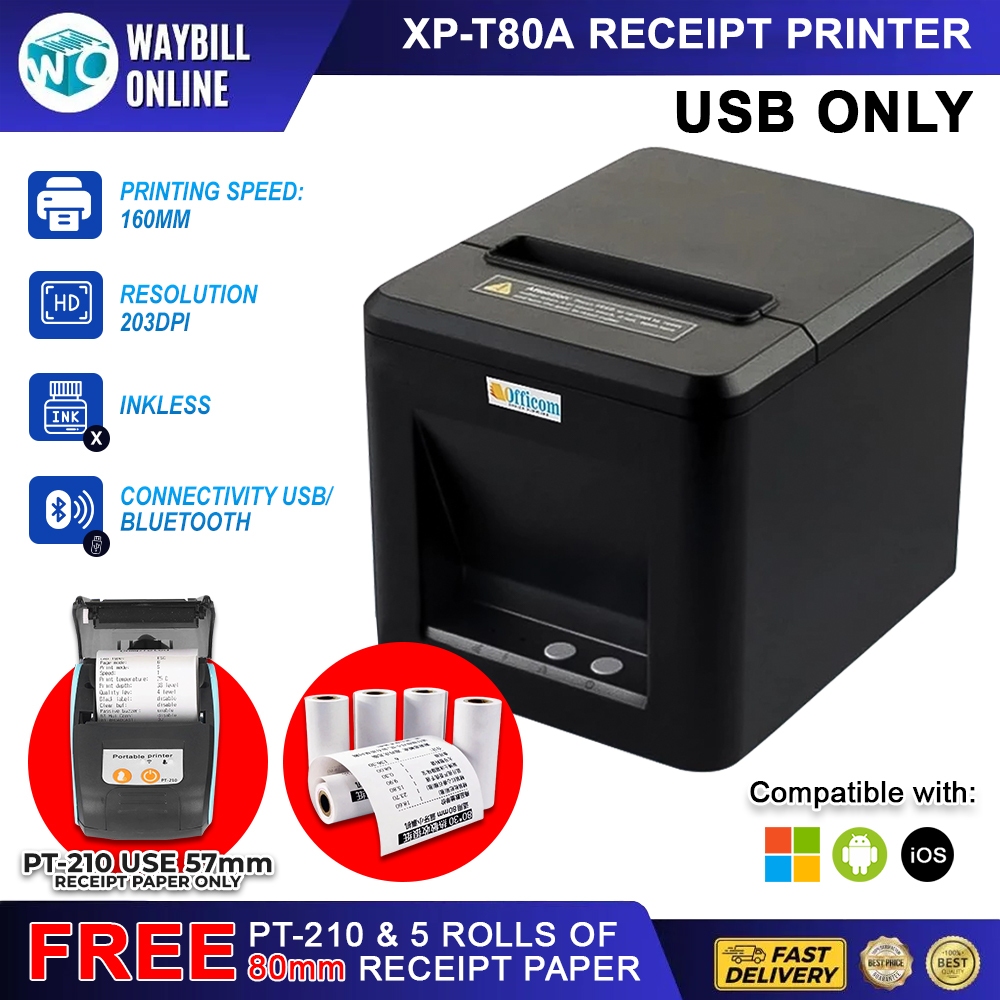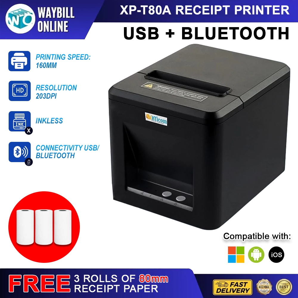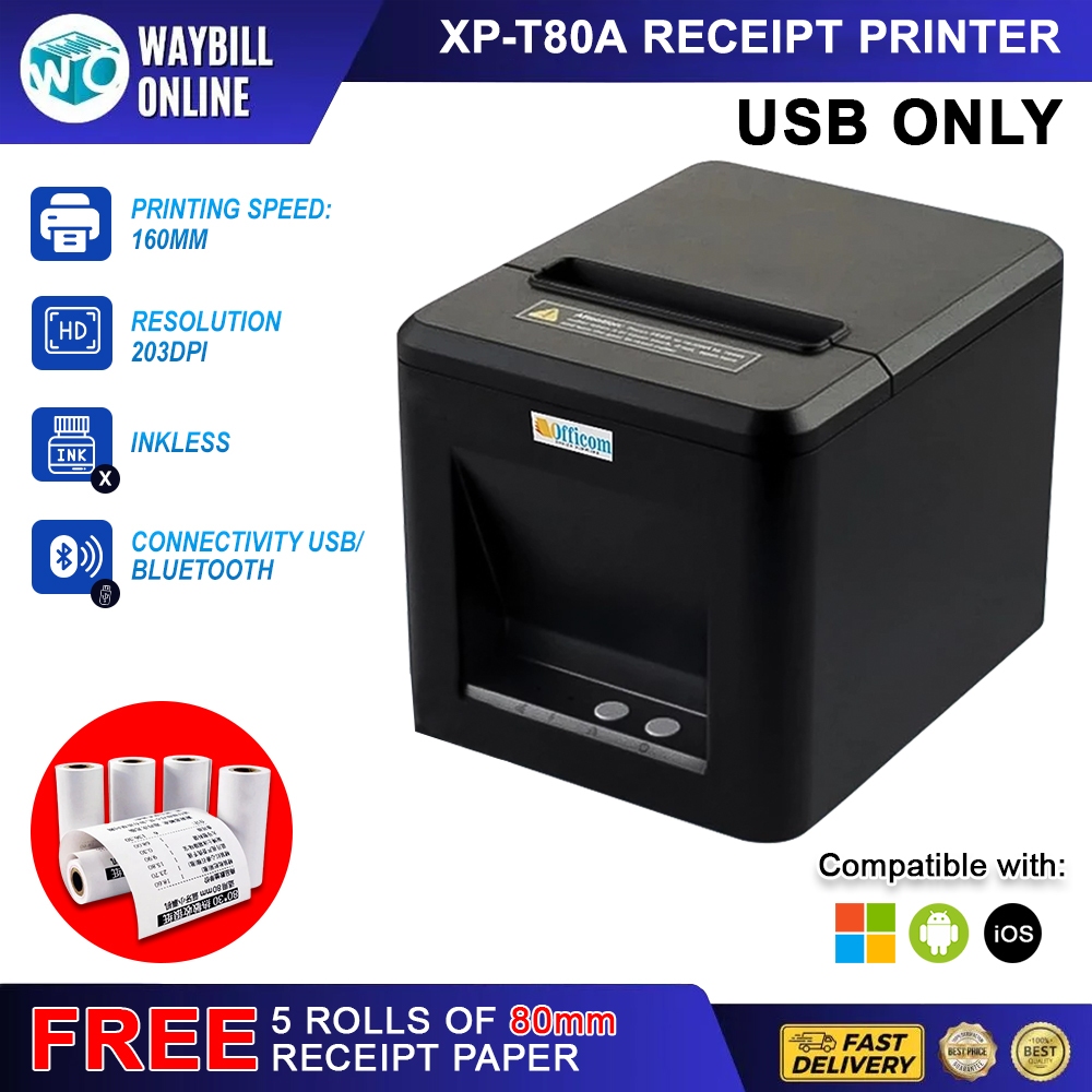 T80A 80mm Receipt Printer Bluetooth Thermal Printer AUTO CUT FREE 5 ROLLS Receipt Paper