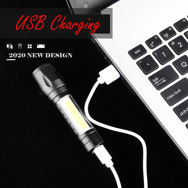 XPE+POLICE CREE RECHARGEABLE MINI LED FLASHLIGHT - 100% Waterproof with USB Cord & Rope Keychain -FG