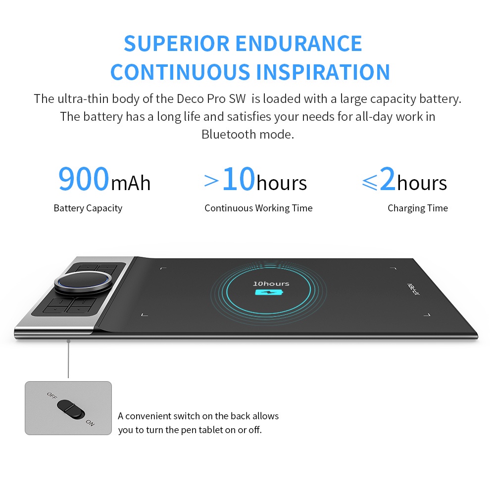 XPPen Deco Pro Wireless Drawing Tablet Wireless Graphic Tablet Wireless Pen Tablet Support Android With Tilt Function Double Wheel & 8 Shortcut Keys 8192 Levels Battery-free Pen