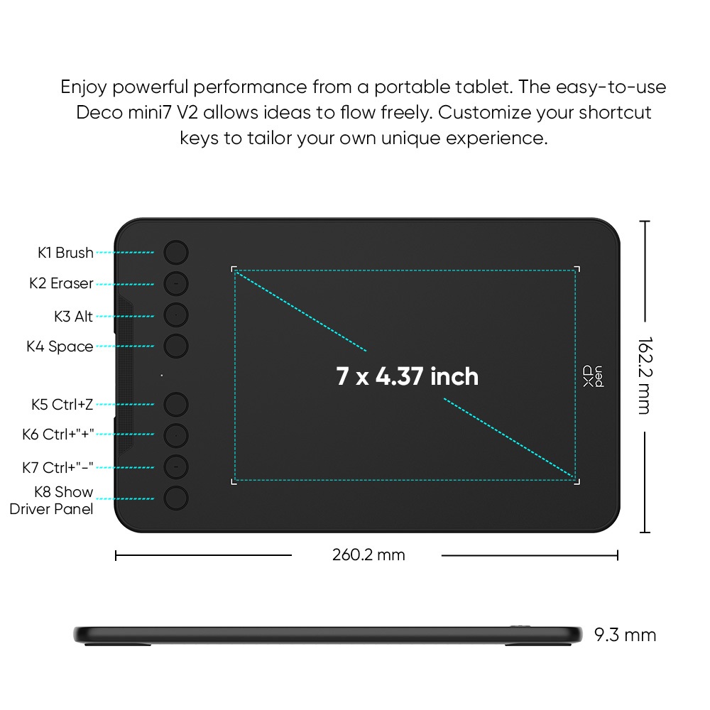 XPPen Deco mini7 V2 Graphic Drawing Tablet Pen Tablet With 16K Pen Pressure For Drawing