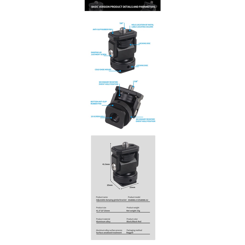 XT-XINTE DSLR Camera Hot Shoe Monitor Flexible Tripod Adapter with Cold Shoe Mount Camera Quick Release Monitor Holder Compatible for GoPro 13 12 11