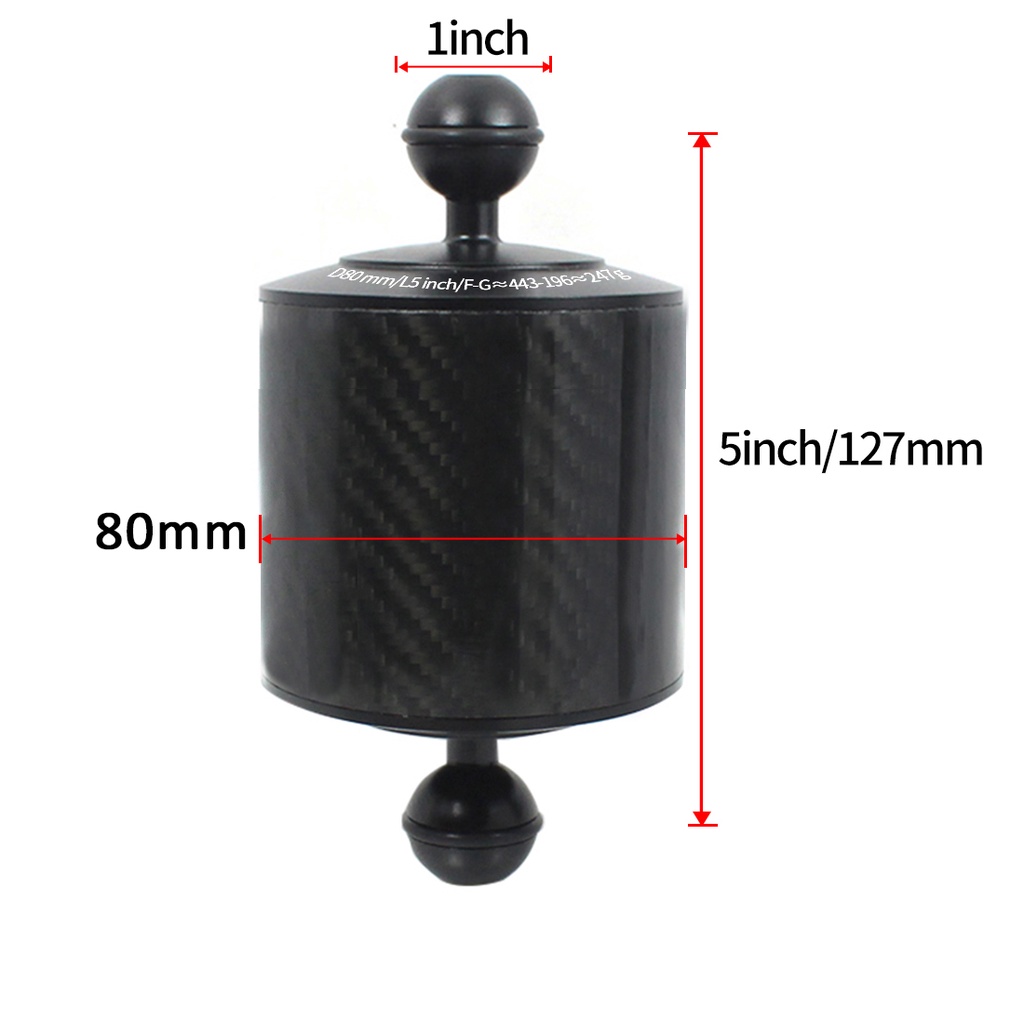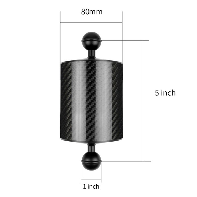 XT-XINTE Upgrade Carbon Fiber Float Buoyancy Aquatic Arm 1" Dual Ball Floating Dia 80mm Diving Camera Underwater Tray Compatible with GoPro Phone SLR