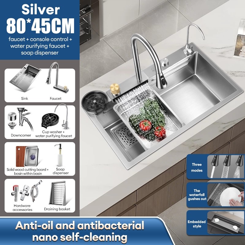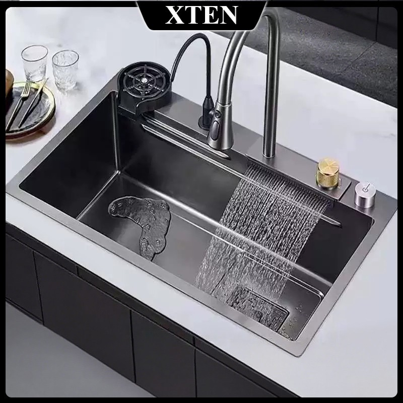 XTEN Modern Kitchen Sink Stainless for Kitchen Lababo Stainless Large Single Sink with Faucet Set