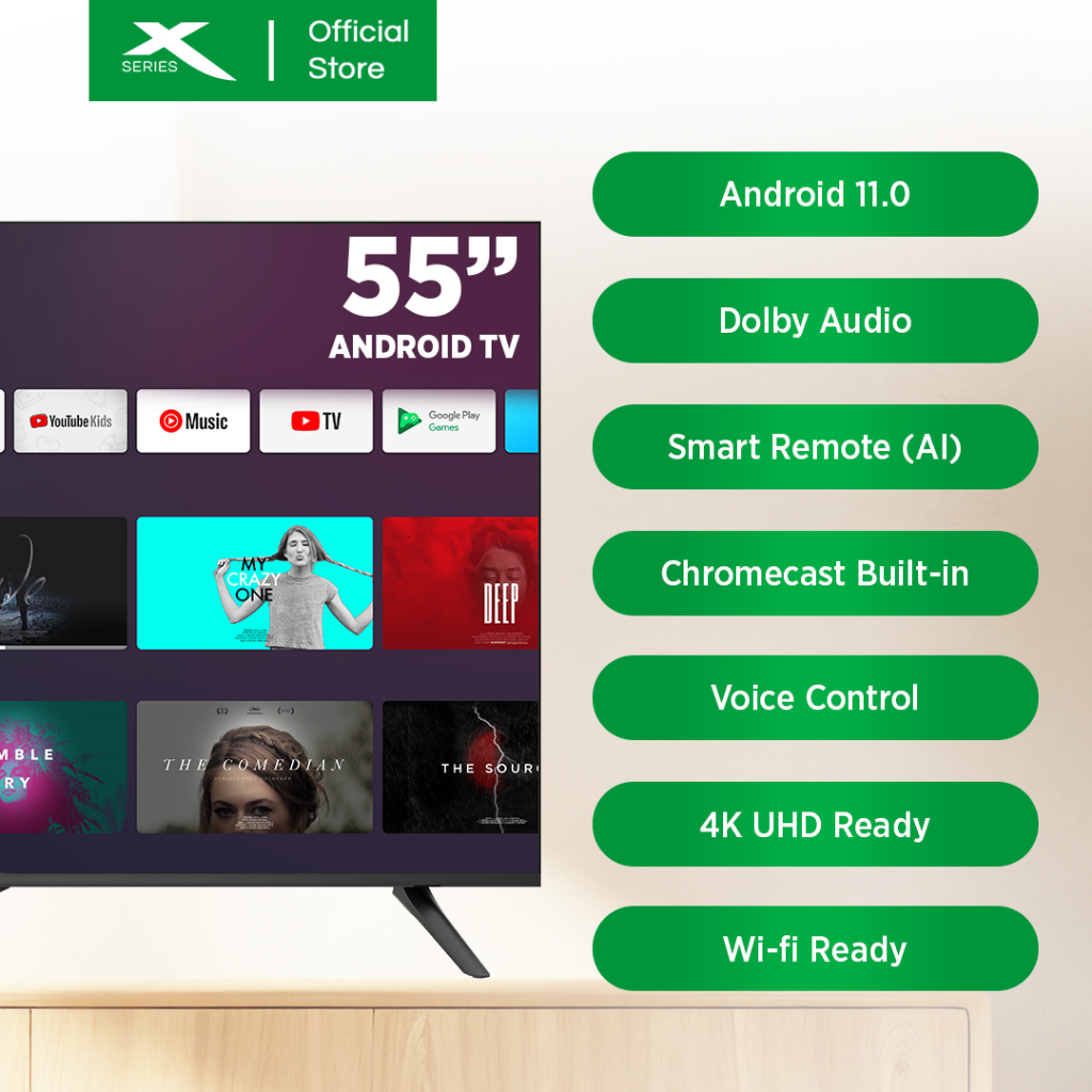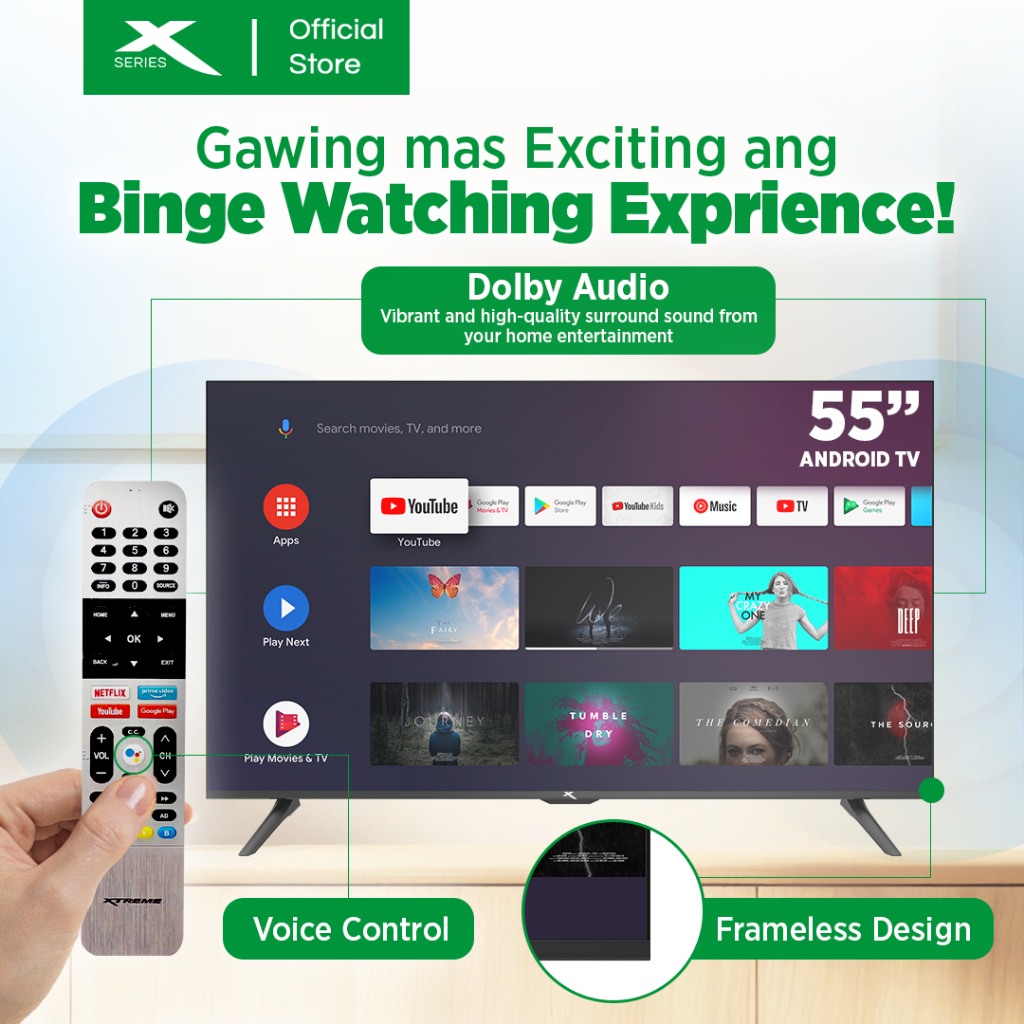Xtreme 55 inch LED TV Android 11.0 4K UHD Frameless with Free Wall Bracket (Black) [MF-5500SAX]