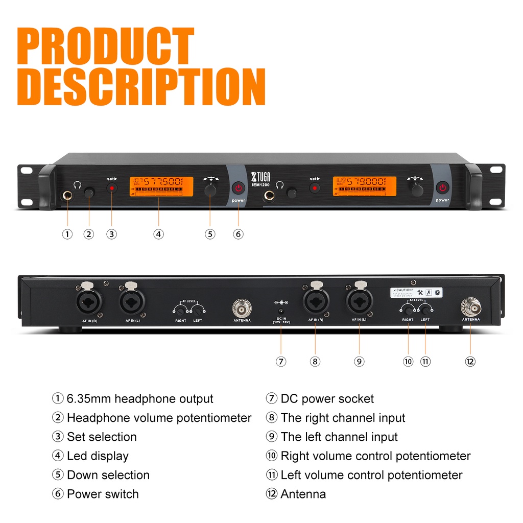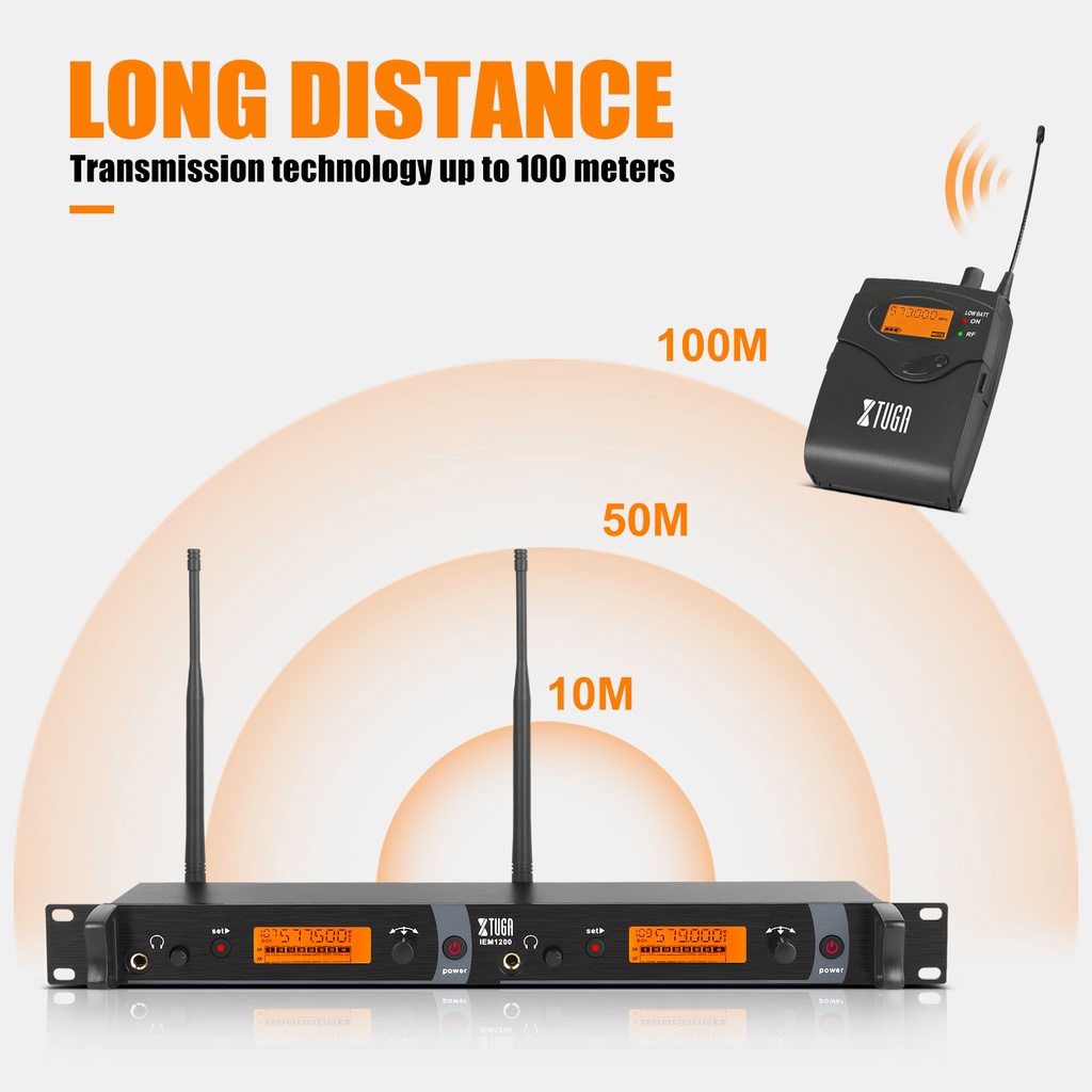 XTUGA IEM1200 Wireless In Ear Monitor System 2 Channel Transmitter 4 Bodypack Earphones Receivers for Stage Performance