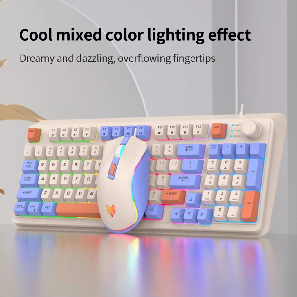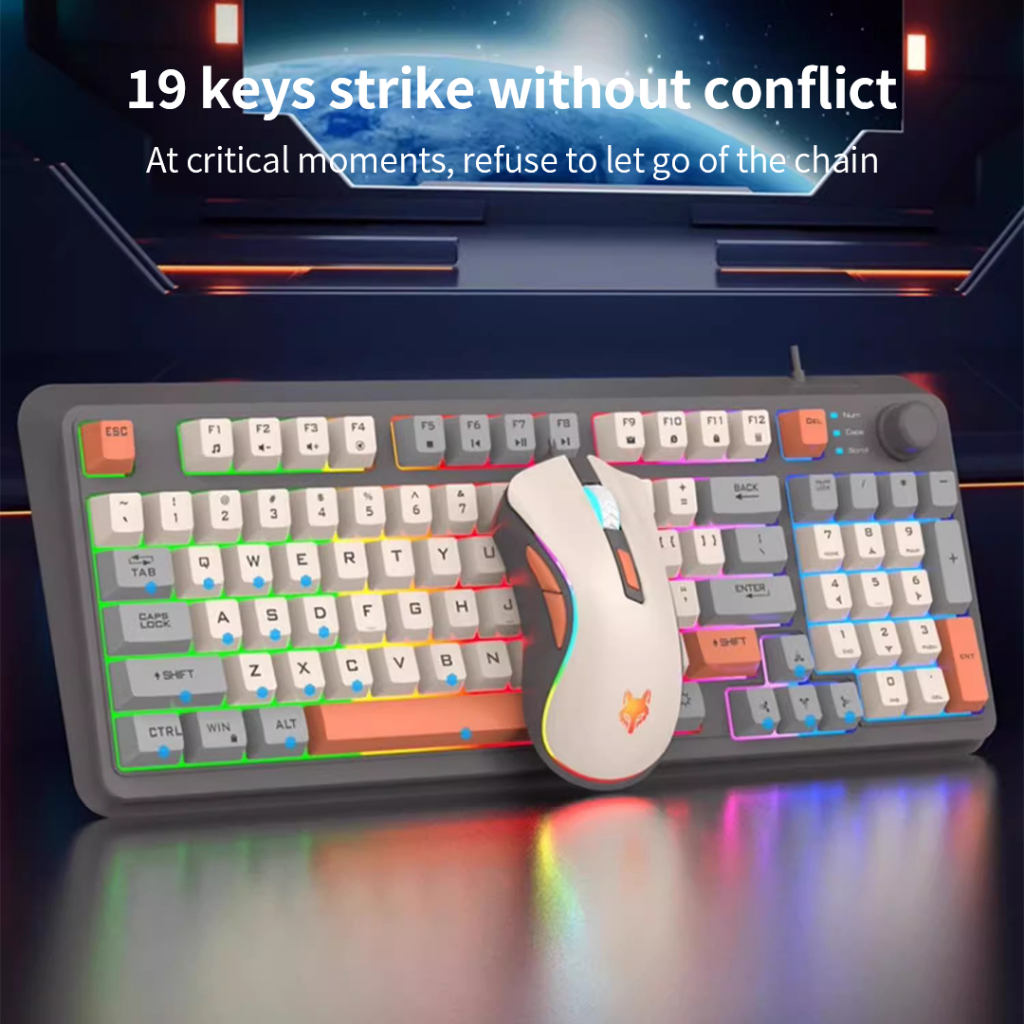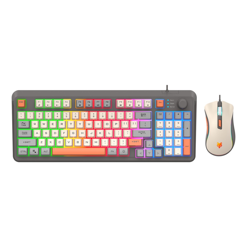 XUNFOX K820 Wired Keyboard & Mouse Set With RGB Lighting Volume Knob Multimedia Controls For E-Sport