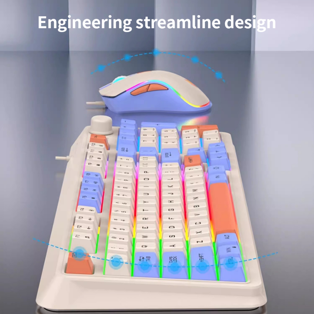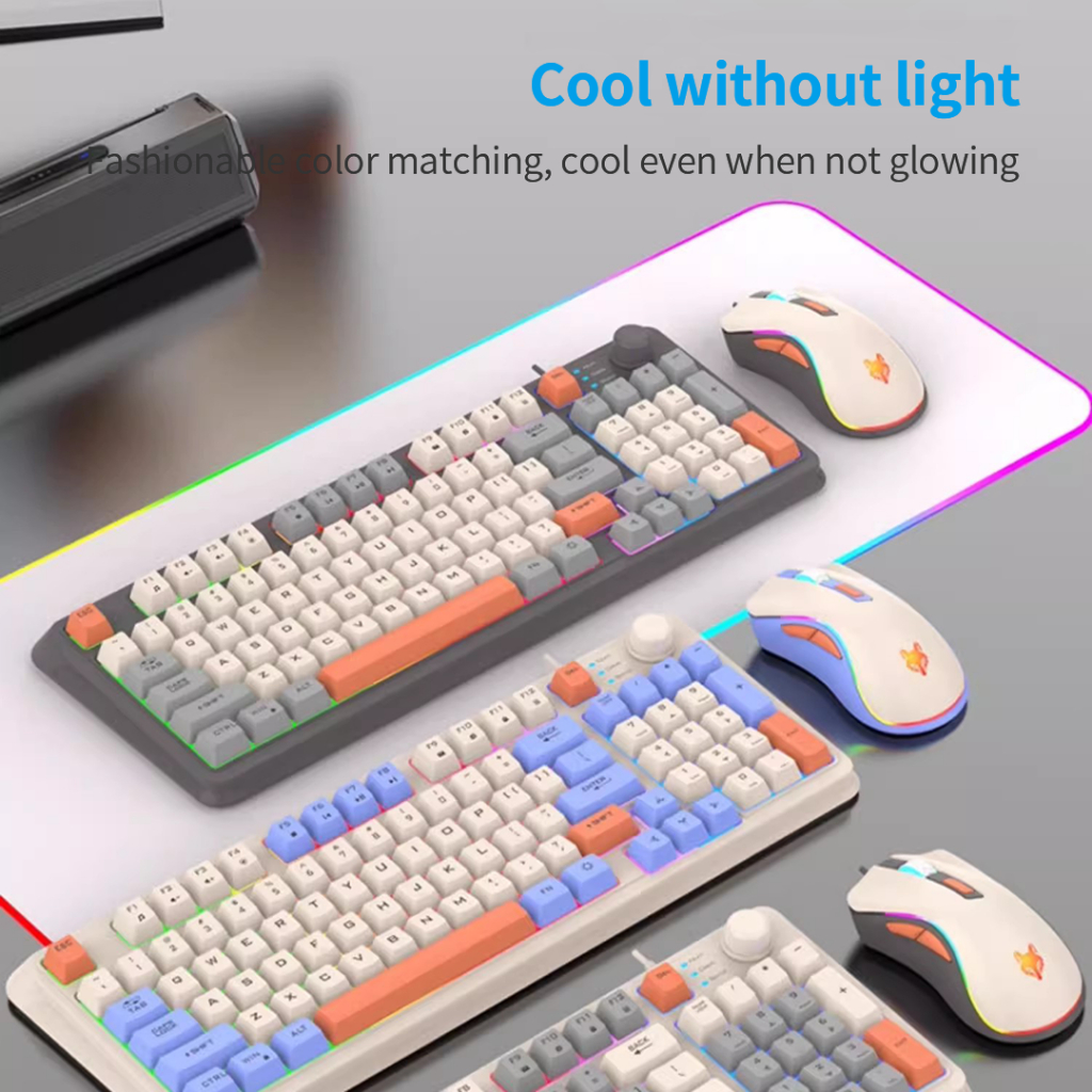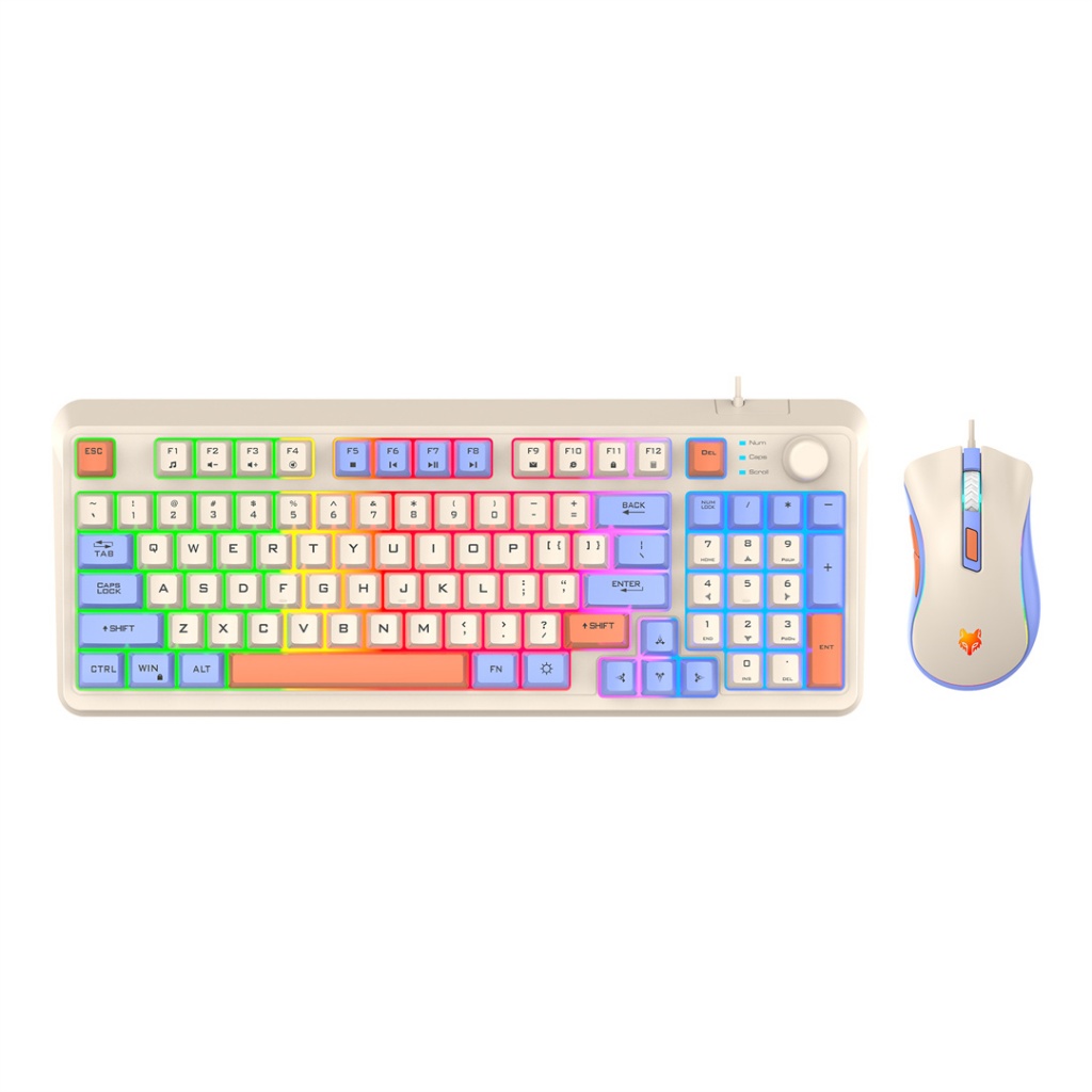 XUNFOX K820 Wired Keyboard & Mouse Set With RGB Lighting Volume Knob Multimedia Controls For E-Sport