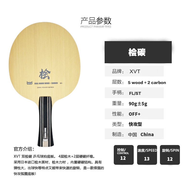 XVT Dual HINOKI CARBON Dark Power Table Tennis Blade/ ping pong Blade/ table tennis bat