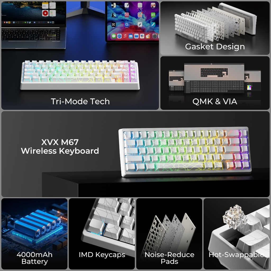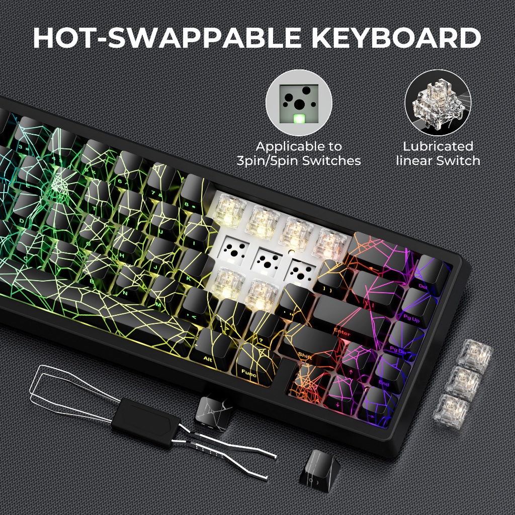 XVX M67 JadeStone Spider Web Mechanical Keyboard With IMD-Tech Keycaps 2.4GHz wireless keyboard