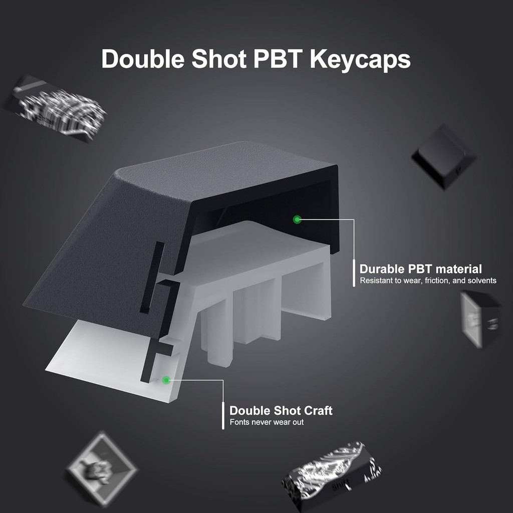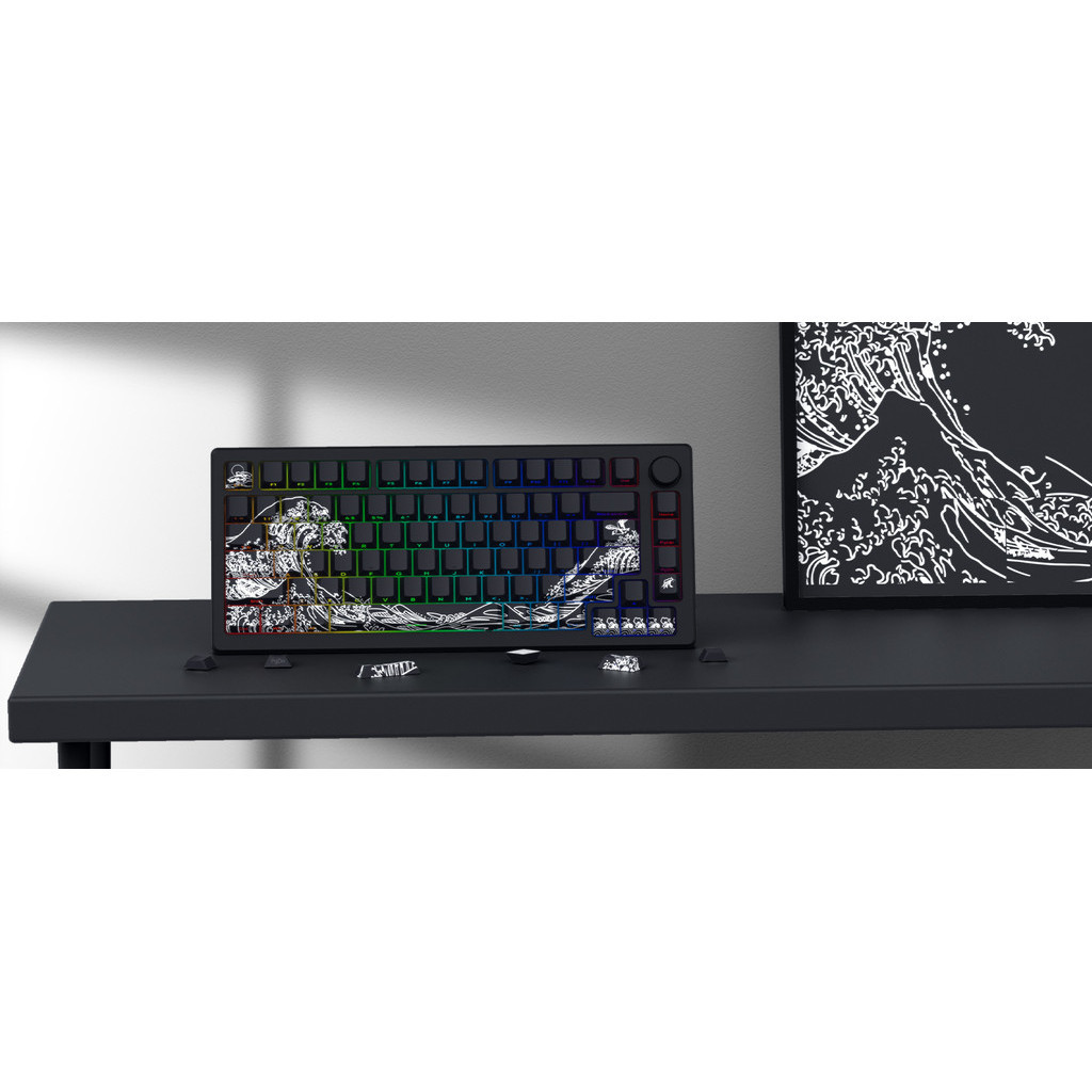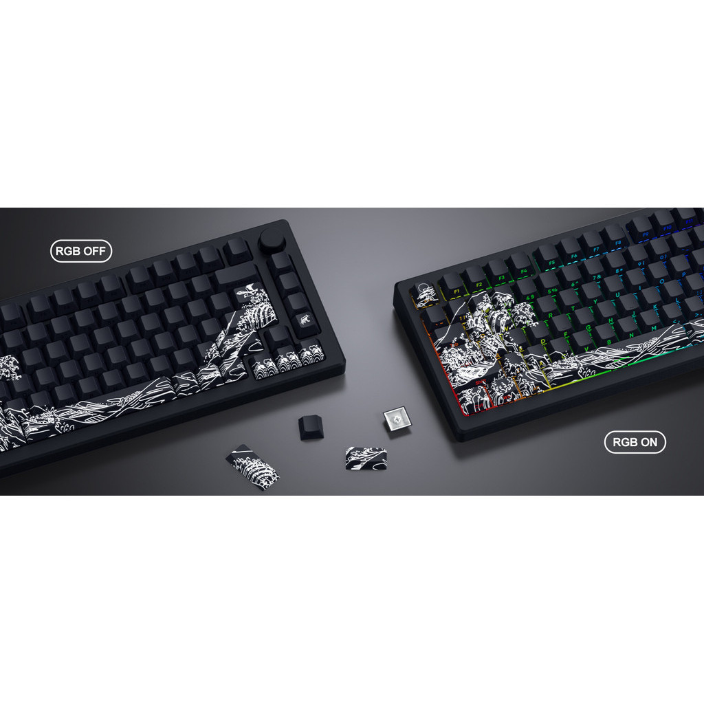 XVX Shine Through Keycaps - PBT Dye Sub Keycap Set, Side Print Keycaps, 131 Keys Cherry Profile Custom Keycaps, Wave of Kanagawa Double Shot Key caps for for Mechanical Keyboards