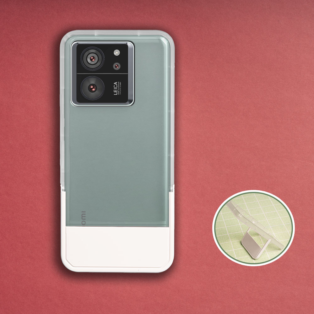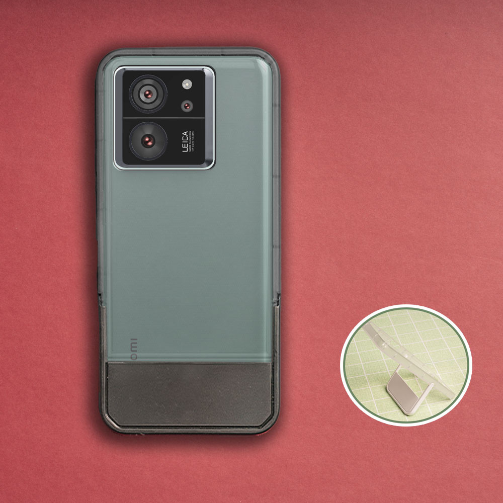Xiaomi 13T Pro Redmi K60 Ultra Anti-Collision Border Translucent Black Kickstand Soft Back Cover Anti-Yellow Shockproof Phone Case