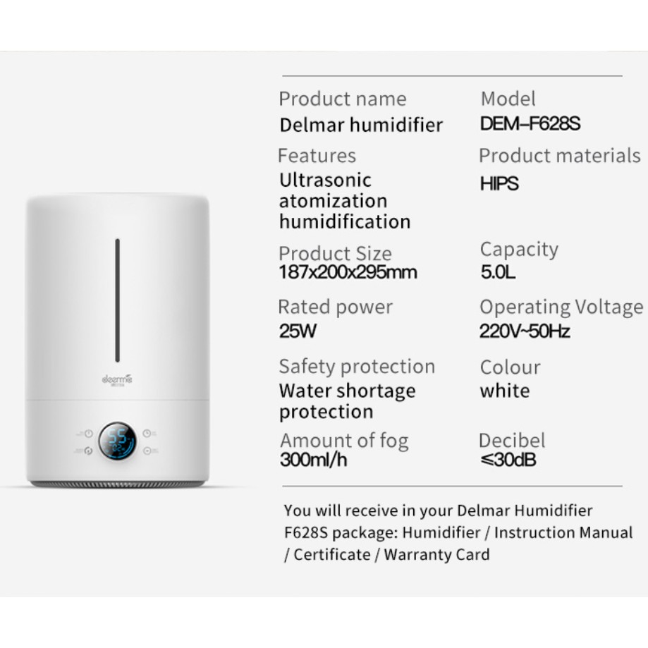 Deerma F628S 5L Air Humidifier UV Sterilization Essential Oil Aroma Diffuser Touch Version