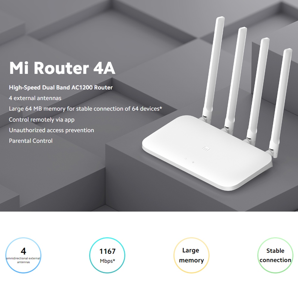 Xiaomi Mi Router 4A | High-Speed Dual Band AC1200 Router | 4 External Antennas | Large 64MB Memory