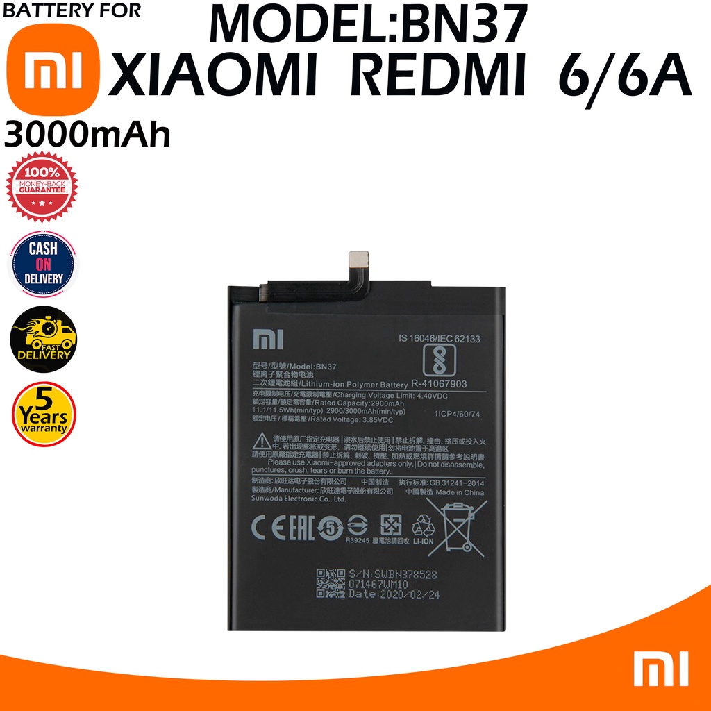 Xiaomi Redmi 6 6a Battery Model BN37 High Quality Capacity 3000mAh